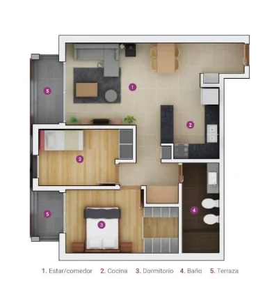 Dos Dormitorios con Placares, Aire acondicionado y pisos flotantes, uno de ellos con salida a Terraza con cerramiento.