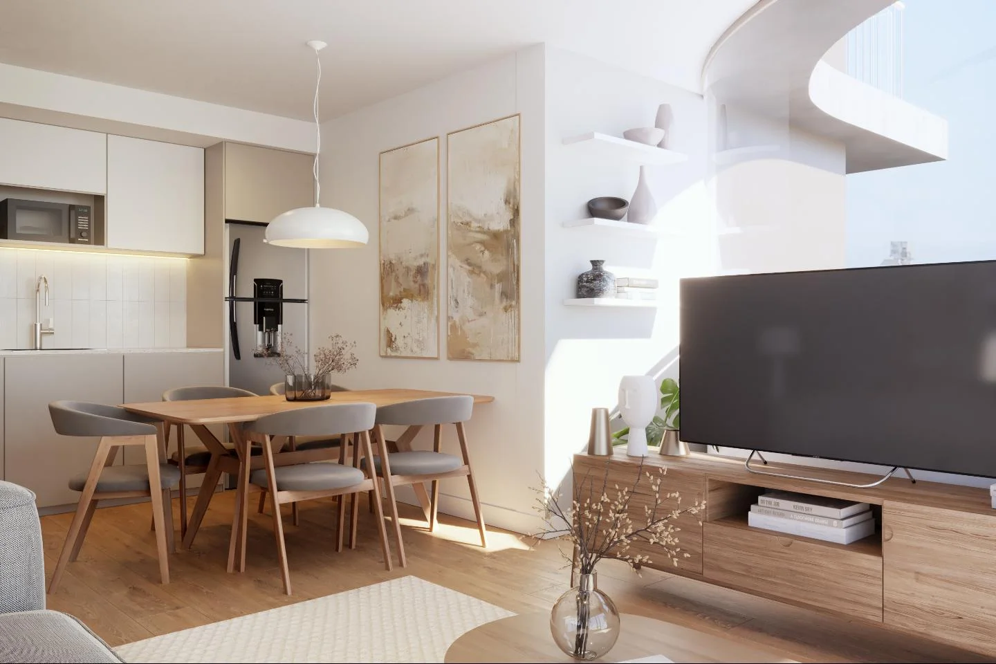 SOFT MORA cuenta con 34 unidades de 1, 2 y 3 dormitorios, diseñados con espacios cómodos y funcionales. Cada unidad incorpora terraza propia, para que la luz natural y el aire libre formen parte de tu vida diaria.