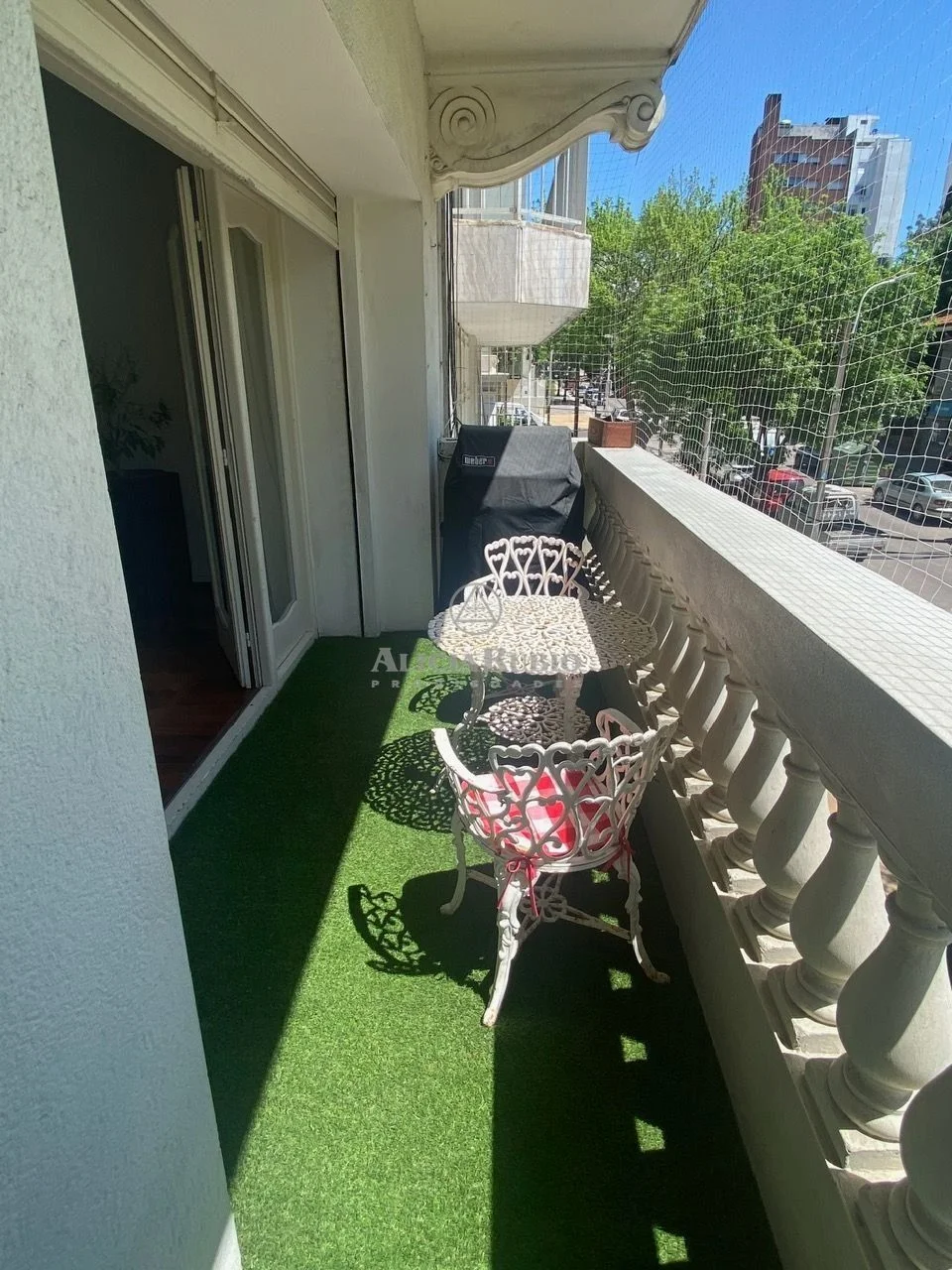 Balcón al frente con mucho sol Este