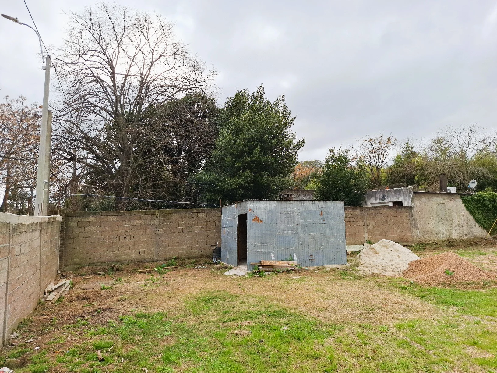 Amplio frente de 16.5m, nivelado por encima de calle. Con servicios de agua y luz, saneamiento disponible.