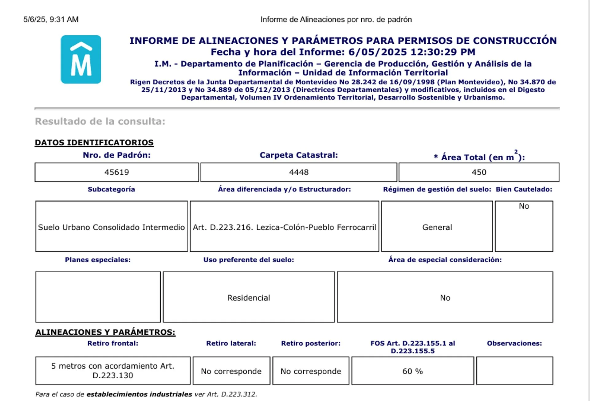Corredor Responsable: - Contacto: Micaela Azziz Se vende Terreno con mejoras sobre la calle Waldemar Hansen. Paralelamente a Waldemar Hansen se encuentran las vías del tren recientemente inauguradas. Por lo cual todo su entorno inmediato está recientemente recuperado. Tiene ubicación privilegiada por su cercanía al centro del Colón y por econtrarse a media cuadra de Av. Garzón y Camino Casavalle. El terreno tiene 10 mts de frente y 45mts de largo. Cuenta con una construcción antigua. Se vende además, de los mismos propietarios, la propiedad lindera, que se trata de una casa con un terreno idéntico al ofrecido en esta publicación. Cada Oficina es de propiedad, gestión y desarrollo independiente La presente publicación describe las características esenciales del inmueble, debiéndose consultar al responsable de la operación por la eventual actualización de las medidas, descripciones arquitectónicas y funcionales, servicios, impuestos, precios y demás información, cuyos valores son aproximados.