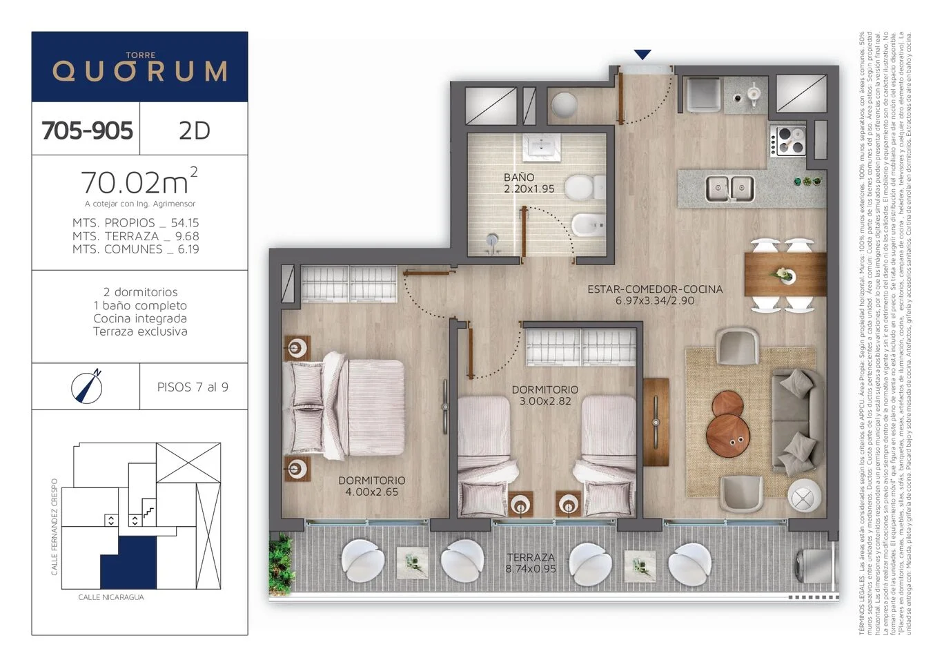Torre Quórum: se ubica en la intersección de Fernández Crespo y Nicaragua, en un punto estratégico del barrio Aguada. Rodeado de servicios, espacios verdes y con excelente conectividad, el edificio forma parte de una zona que viene consolidándose como nuevo polo de desarrollo urbano en Montevideo.