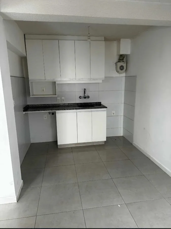 . Cocina integrada con placares, extractor y espacio con conexión para lavarropas