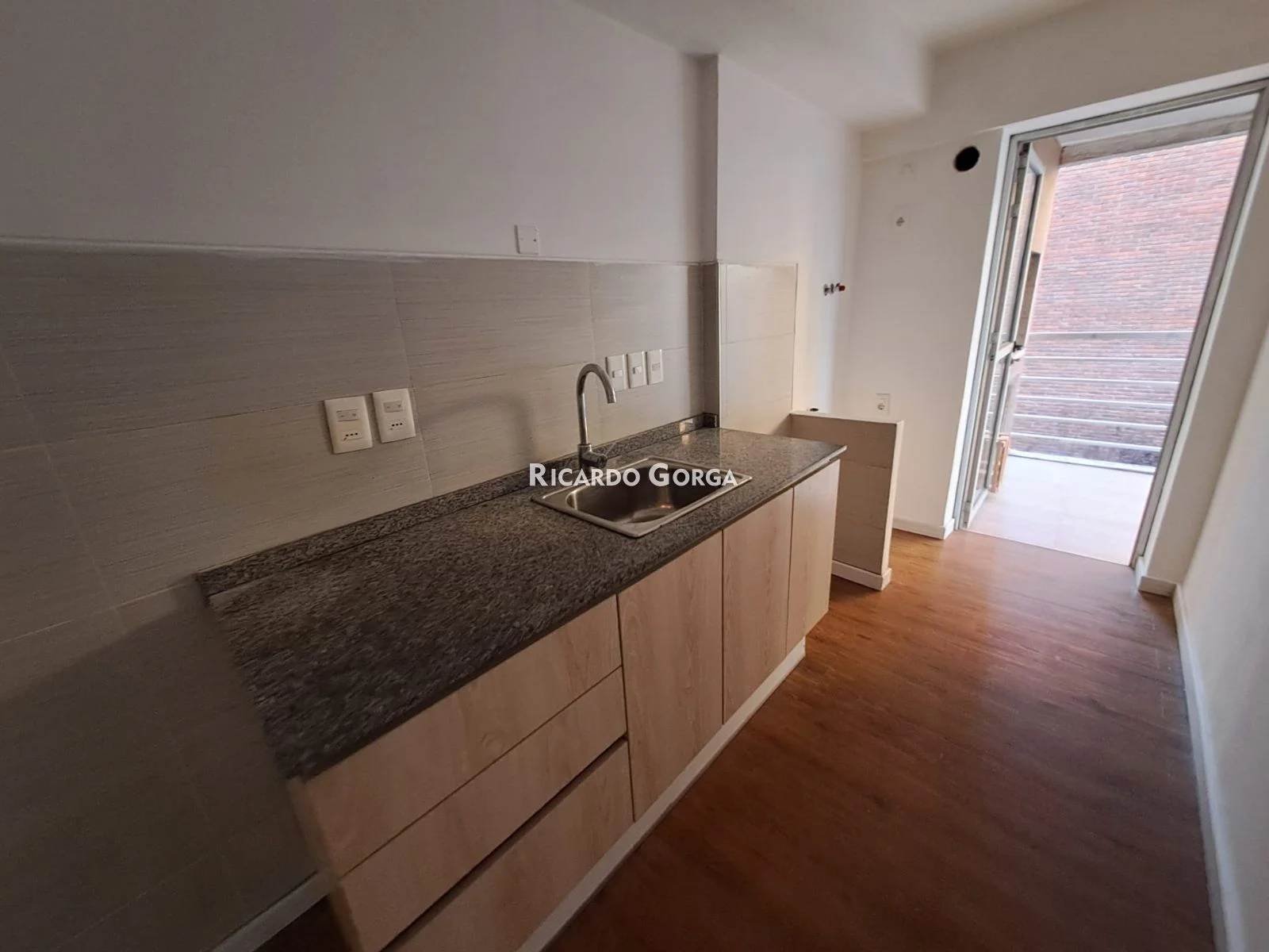 Cocina semi definida con mesada de granito, una pileta de acero inoxidable, griferia mono comando, mueble bajo mesada, posibilidad de conectar campana de extracción y calefon solo para la cocina, puerta salida a terraza.