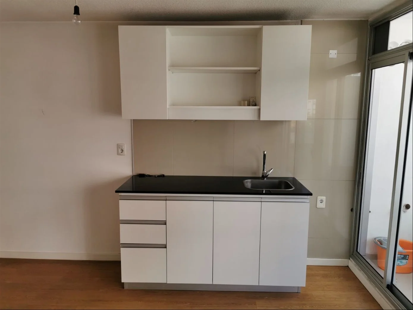 Amplio Living comedor, cocina integrada con buena capacidad de muebles aéreos y bajo mesada