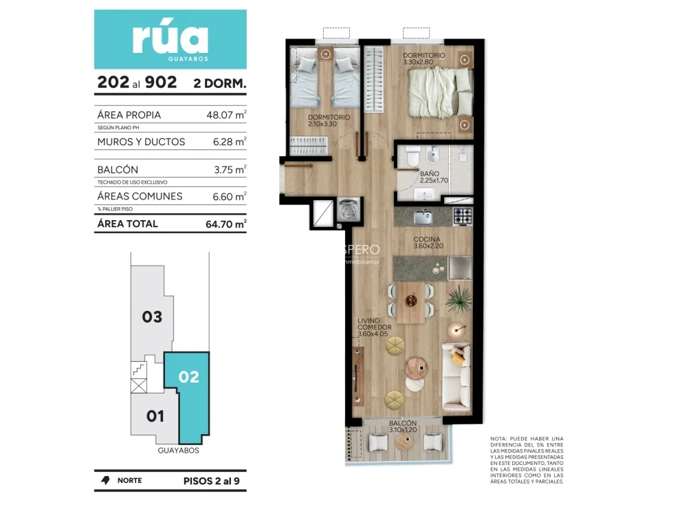RUA GUAYABOS GUAYABOS 1639 CORDON SOHO DICIEMBRE 2026 PRECIO PROMOCIONAL POR PAGO CONTADO EN “EXCLUSIVIDAD” Se trata de un proyecto ubicado estratégicamente en la zona del Cordón Soho, cerca de Av. 18 de Julio. A minutos de Tres Cruces, El proyecto de 11 pisos se caracteriza por sus terminaciones de calidad utilizando en todas sus paredes mampostería tradicional, componiéndose de 29 apartamentos, 3 apartamentos por piso, y 1 penthouse . Todos los apartamentos cuentan con balcón pensados para el disfrute y el aprovechamiento de los espacios. Se utilizará pisos vinilicos símil madera de alto tránsito, cocinas integradas con muebles aéreos y bajo mesada, campana de acero inoxidable ya instalada, baños con terminaciones de primera calidad pisos y revestimientos cerámicos, con cortinas de enrollar en todas las ventanas Preinstalación para Aire Acondicionado Mini Split en living-comedor y dormitorios. En planta baja y subsuelo se encuentran las 16 cocheras techadas o abiertas. Y bicicleteros. En último piso podemos encontrar dos amplias terrazas con vistas panorámicas, barbacoa y Cowork totalmente equipados, Laundry, tender. Parrillero interior UNIDAD 502 DE 2 DORMITORIOS U$S 145.000 + 4 % GASTOS DE OCUPACIÓN UNIDAD 702 DE 2 DORMITORIOS U$S 150.000 + 4% GASTOS DE OCUPACION Sup. Propia: 54.35m Sup. Balcón 3.75m Sup. Total: 44.40m COCHERAS OPCIONALES DESDE: U$S 21.000+ 4 % Con los beneficios de la Ley 18.795: - Exoneración de ITP (2% sobre el valor de catastro). - Exoneración del Impuesto al Patrimonio por 10 años. - Exoneración del Impuesto a la Renta para alquileres por 10 años. También tiene Exoneración del IVA en el precio de compra. Referencia: Va2281 Los datos fueron proporcionados por empresa constructora en consecuencia exime a Inmobiliaria de toda responsabilidad