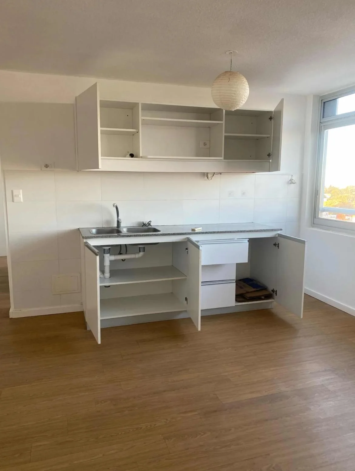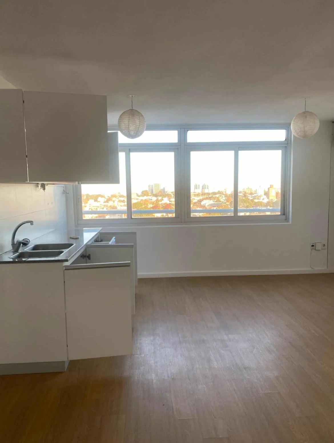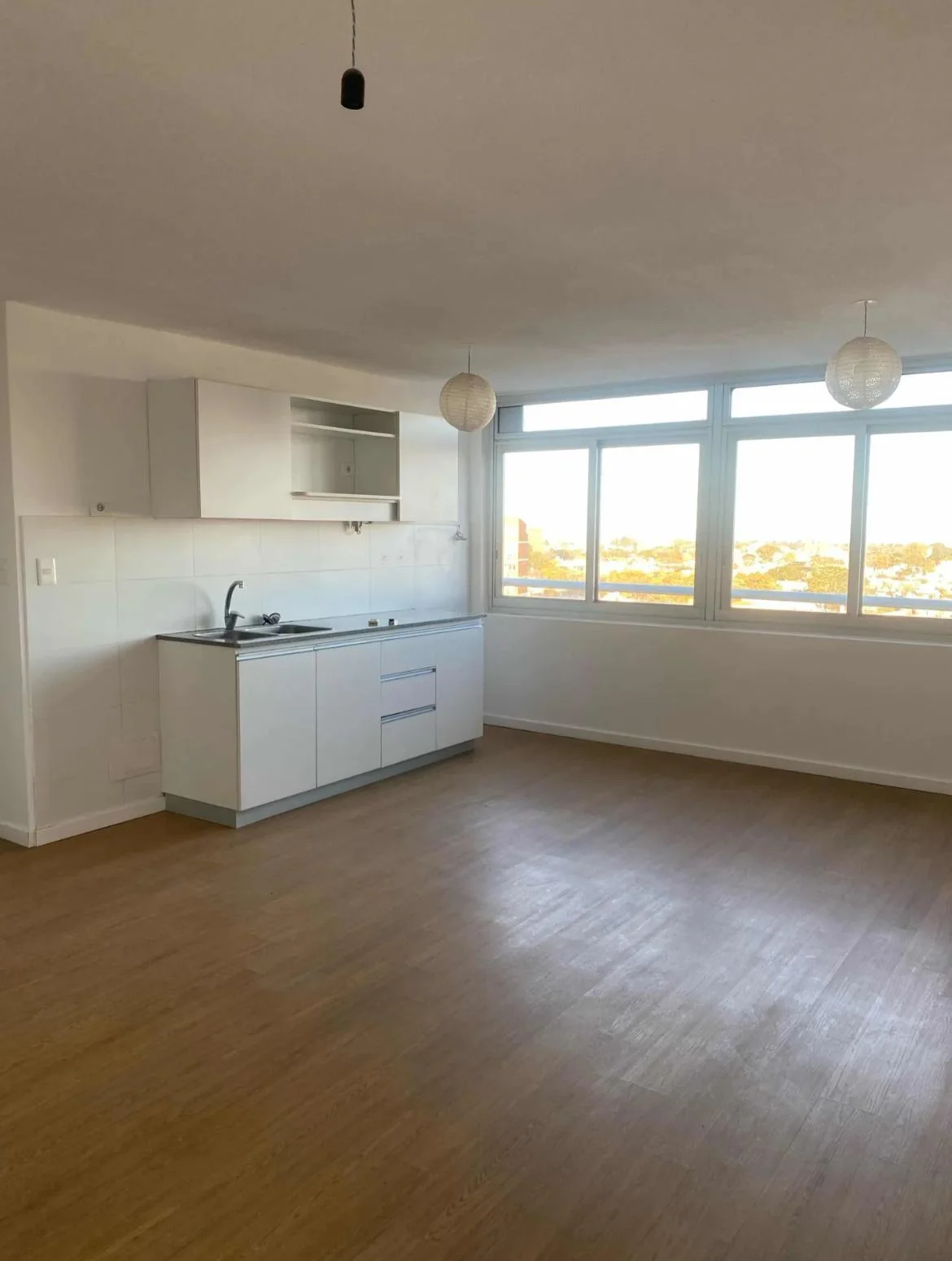 Cocina integrada con placares aéreos y bajo mesada.