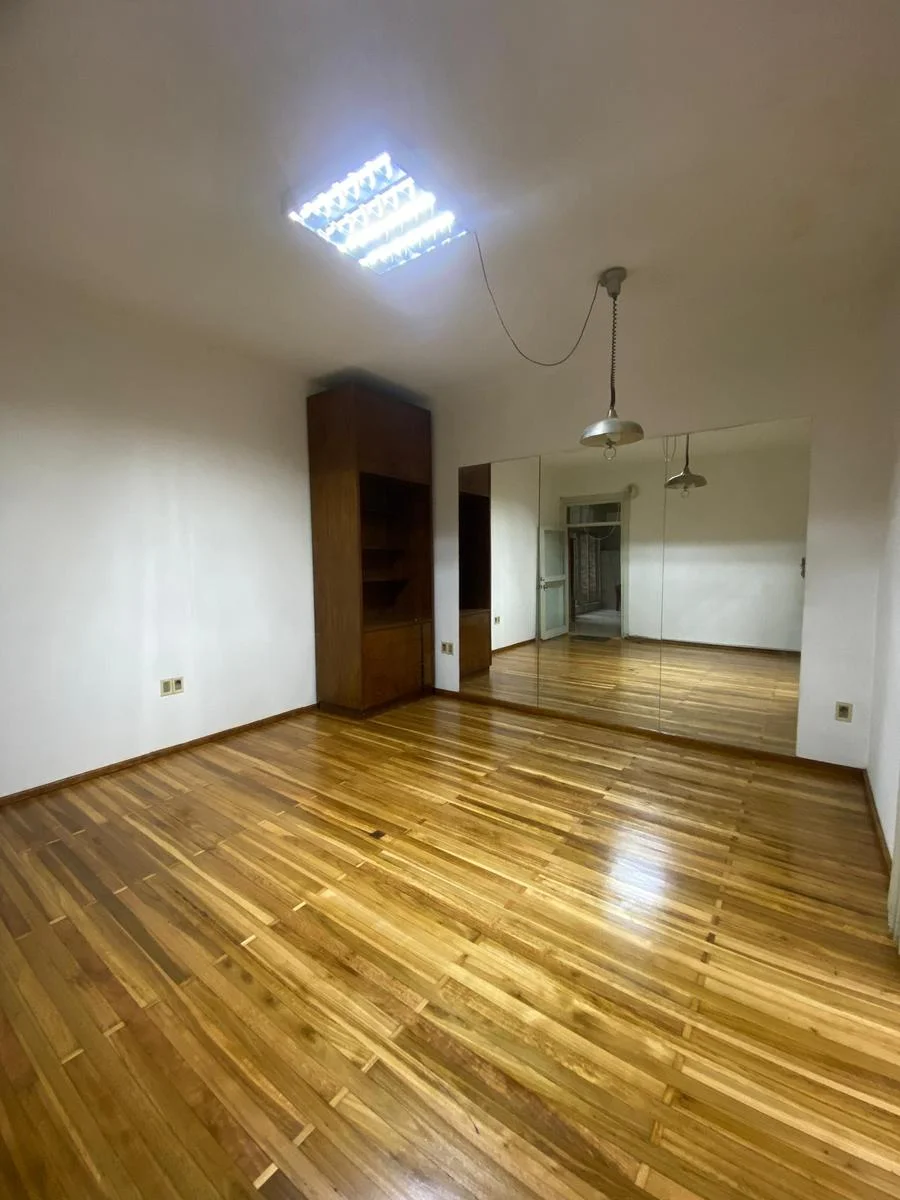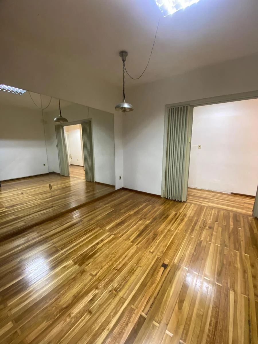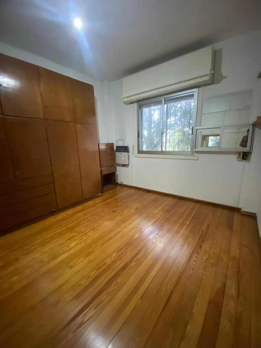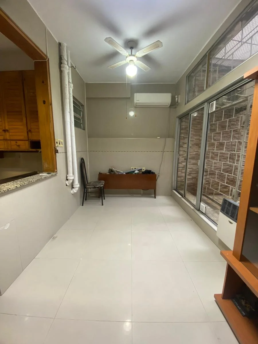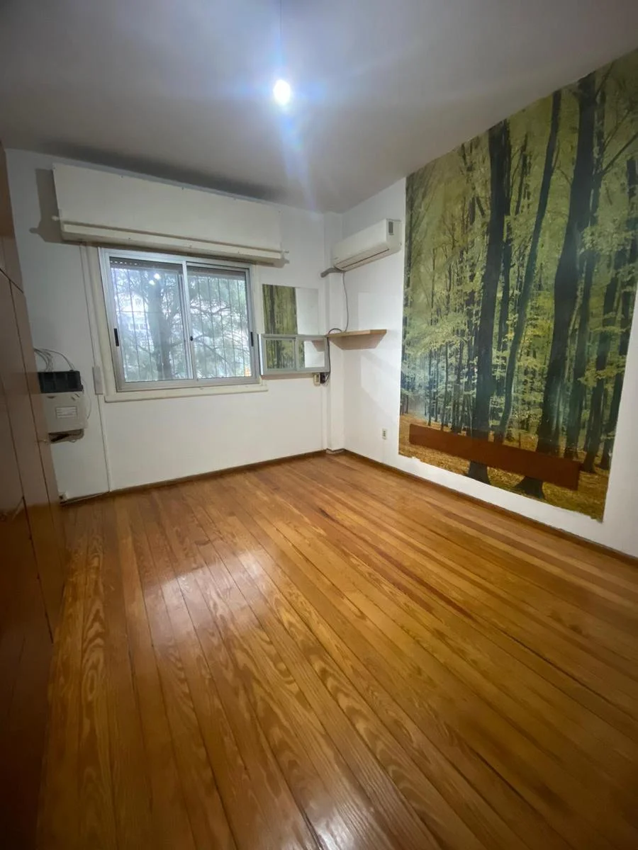 Con una superficie de 90 m², el apartamento cuenta con tres dormitorios, todos con elegantes pisos de madera. Los dos baños, uno completo y otro de servicio, están revestidos en cerámica, con el baño principal siendo de generosas dimensiones.