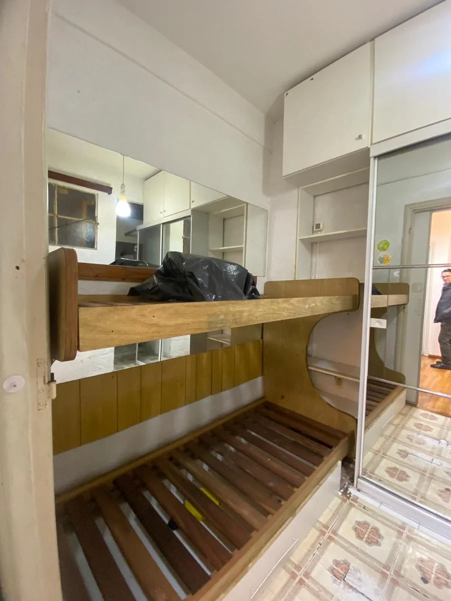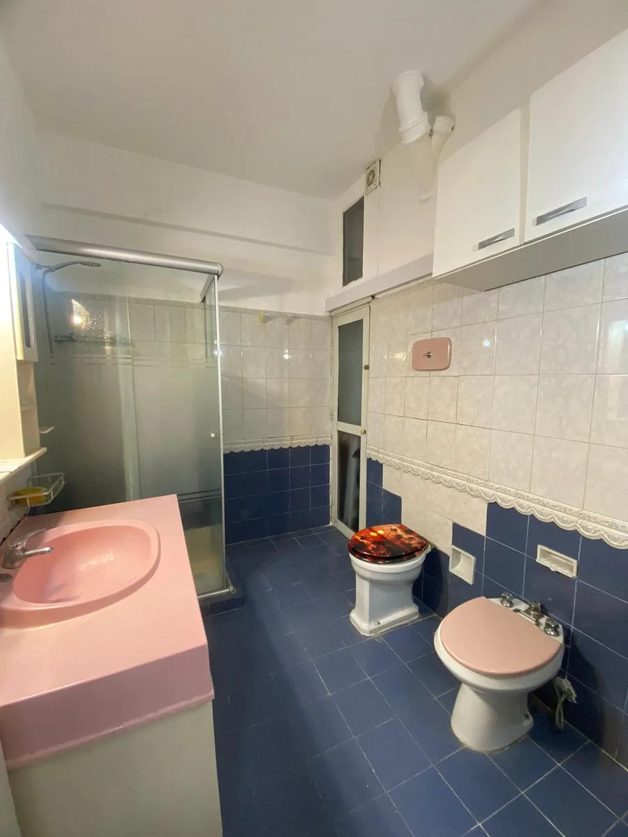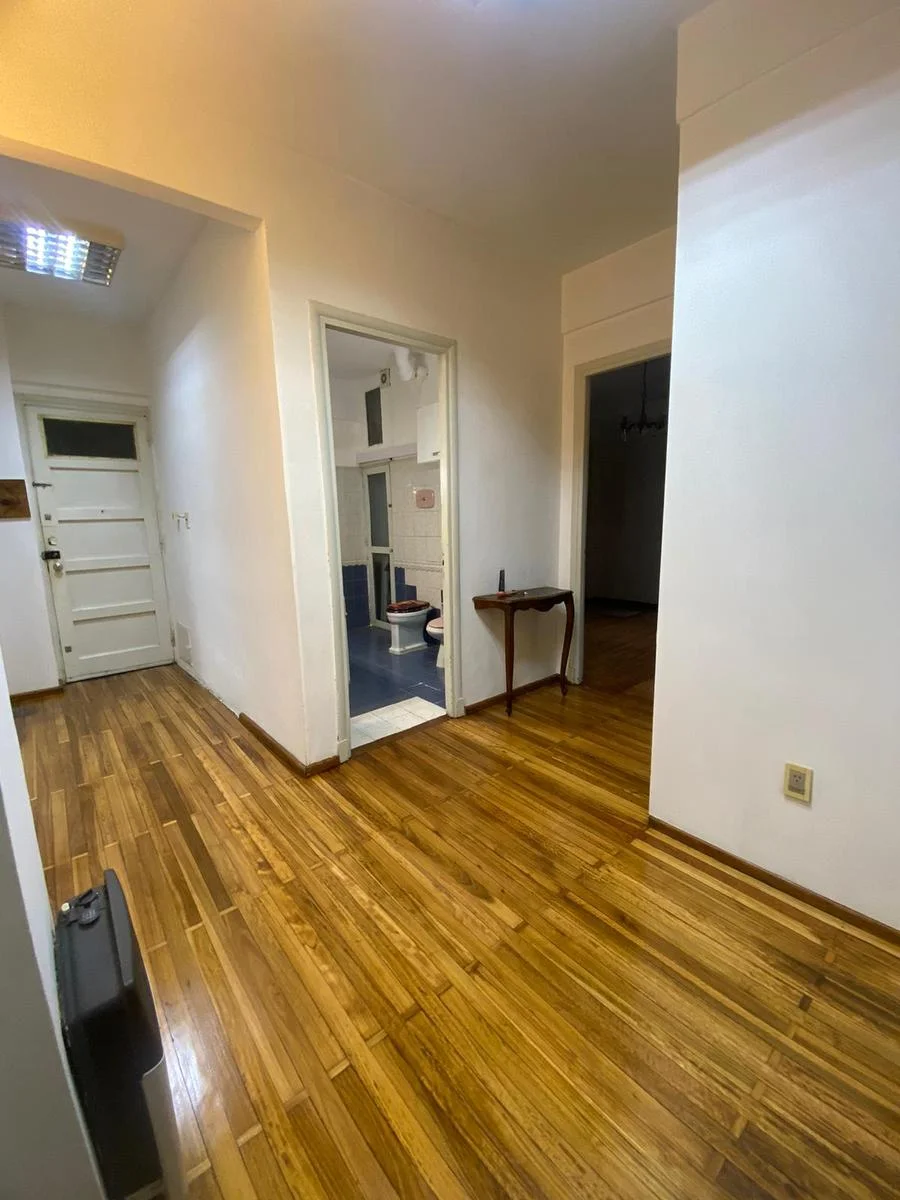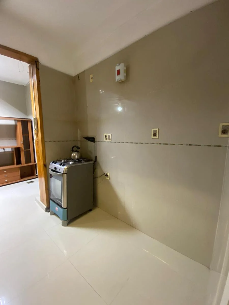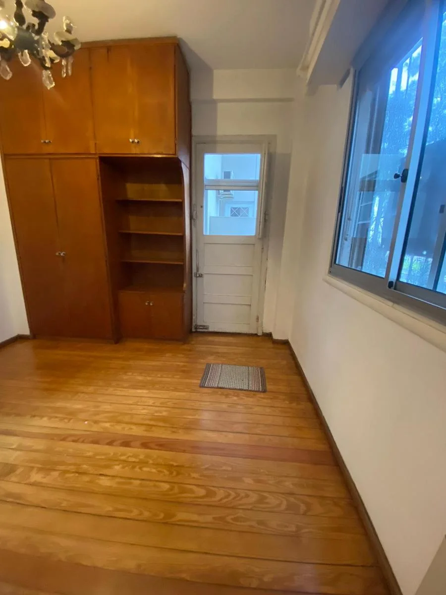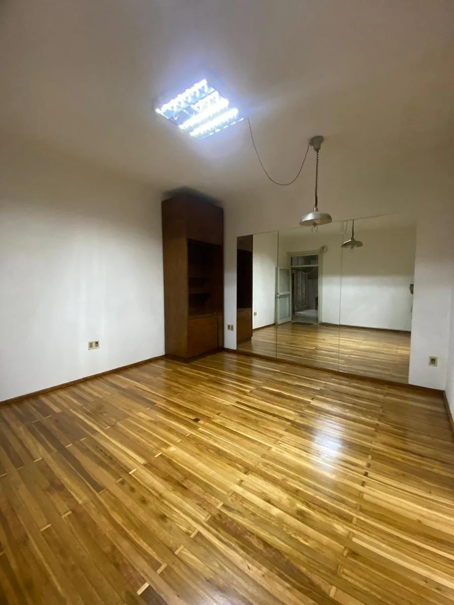 Con una superficie de 90 m², el apartamento cuenta con tres dormitorios, todos con elegantes pisos de madera. Los dos baños, uno completo y otro de servicio, están revestidos en cerámica, con el baño principal siendo de generosas dimensiones.