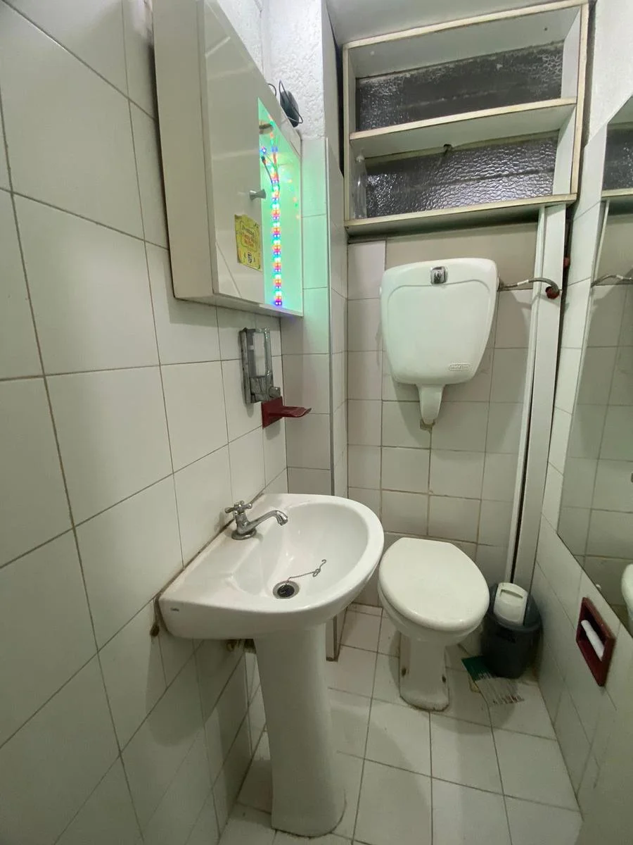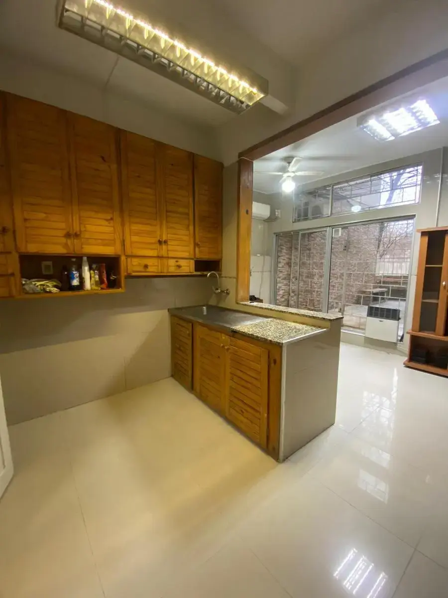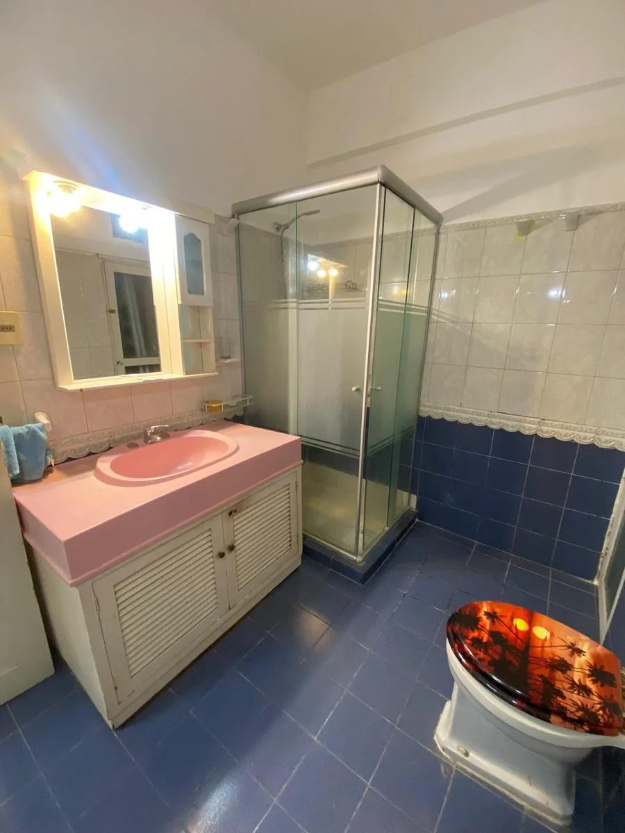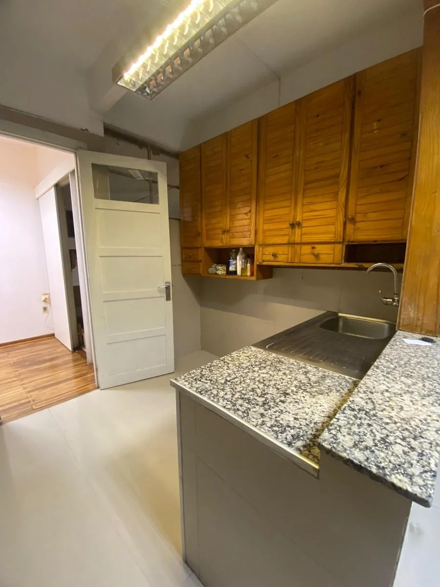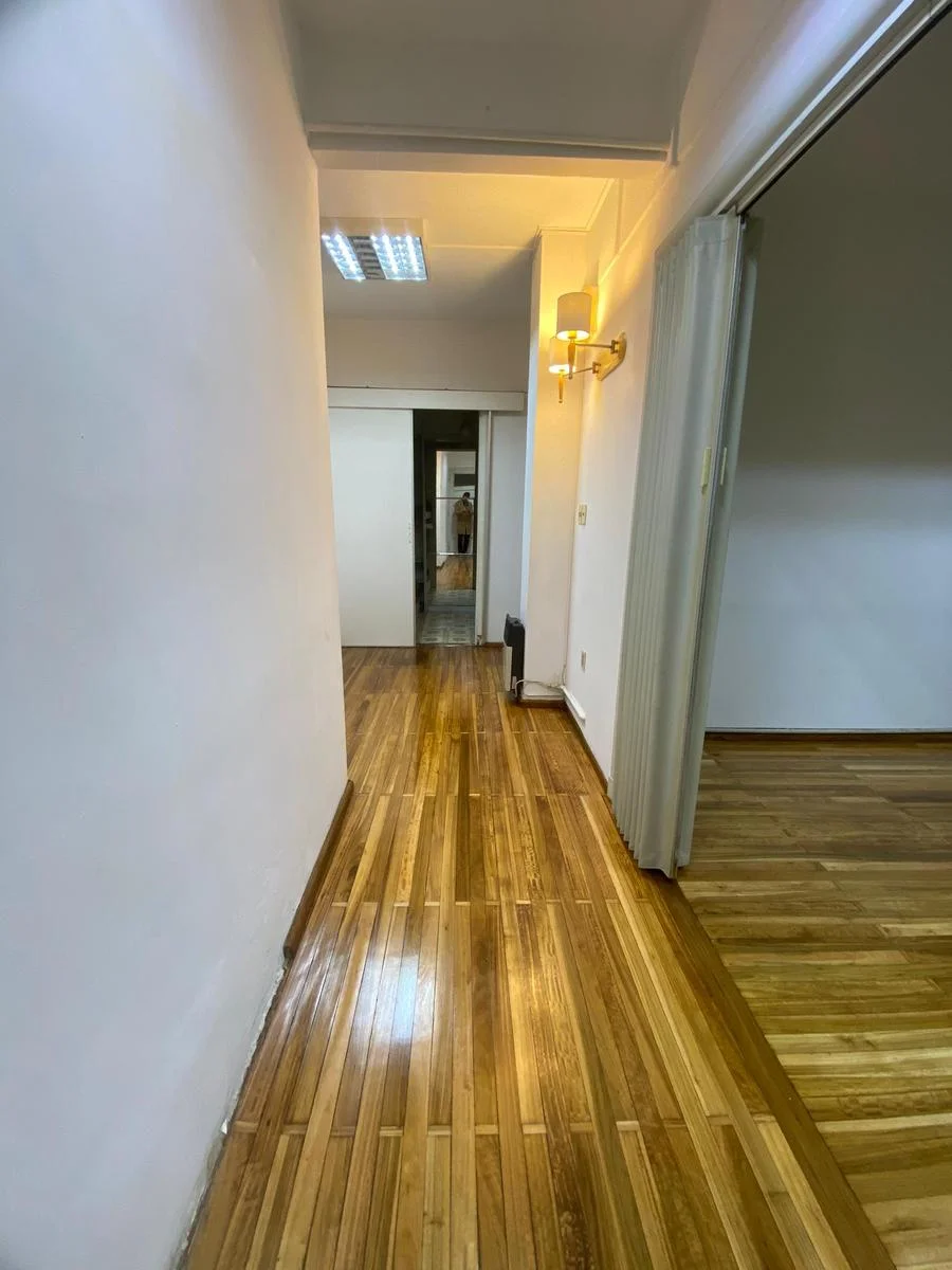 Con una superficie de 90 m², el apartamento cuenta con tres dormitorios, todos con elegantes pisos de madera. Los dos baños, uno completo y otro de servicio, están revestidos en cerámica, con el baño principal siendo de generosas dimensiones.