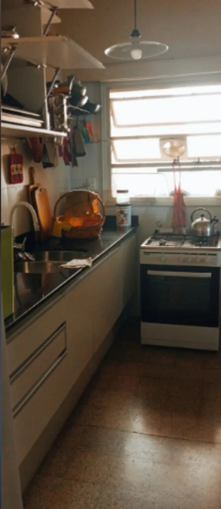 Monolítico en cocina, distribución y balcón