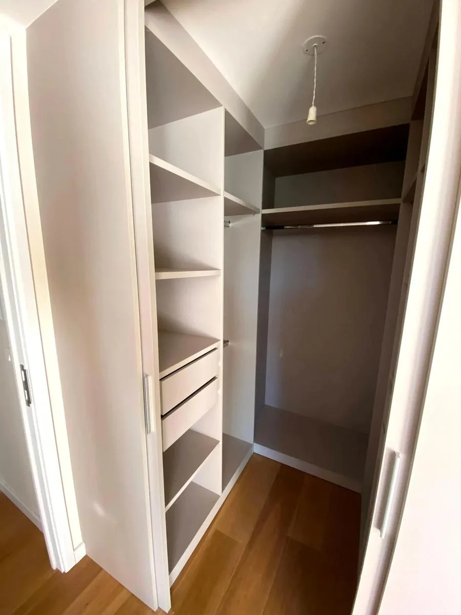 Un dormitorio con placard incorporado.