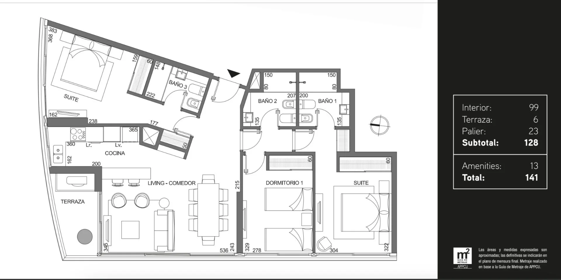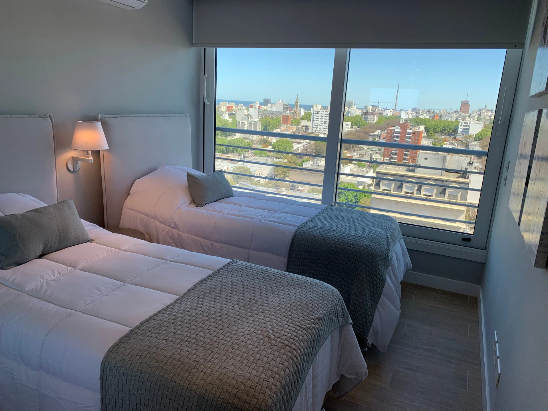 Espectacular planta, piso 25, toda al frente, living comedor con terraza, cocina integrada al mismo mediante barra desayunadora, 3 dormitorios, el principal en suite, 3 baños.