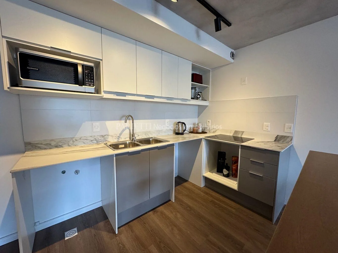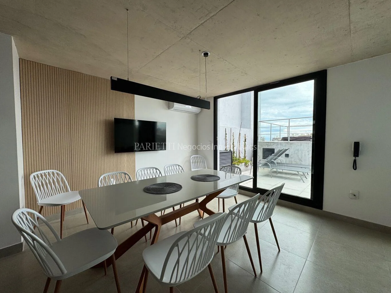 Estrenando el Edificio. En un punto espectacular de Pocitos. Living-comedor con cocina americana, 2 dormitorios ( suite), 2 baños.