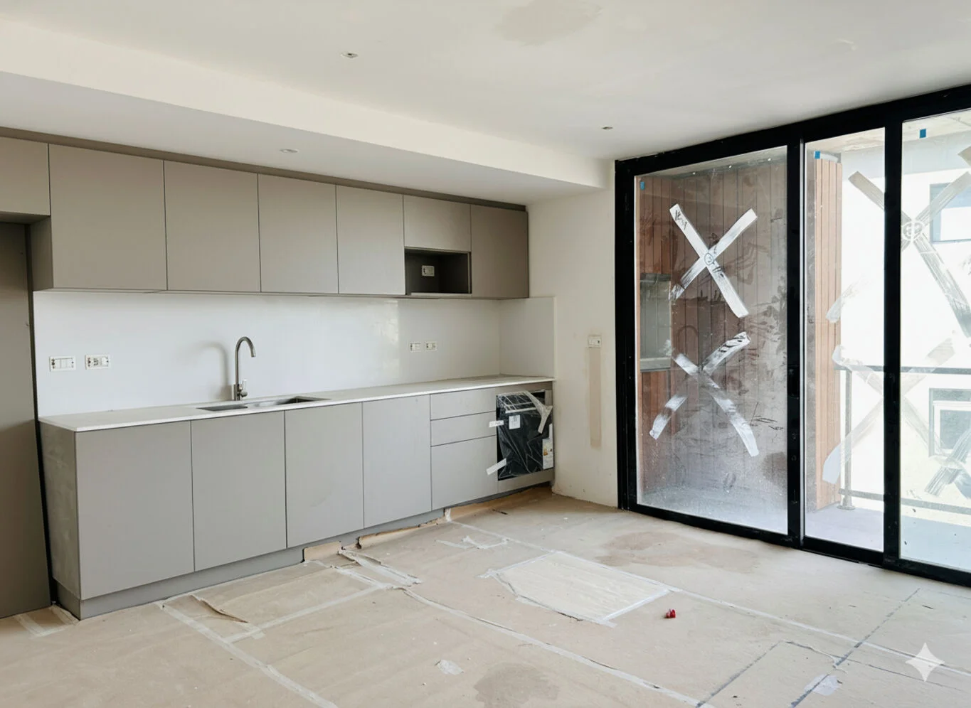 Cocina equipada con electrodomésticos Samsung: horno, anafe, campana extractora.