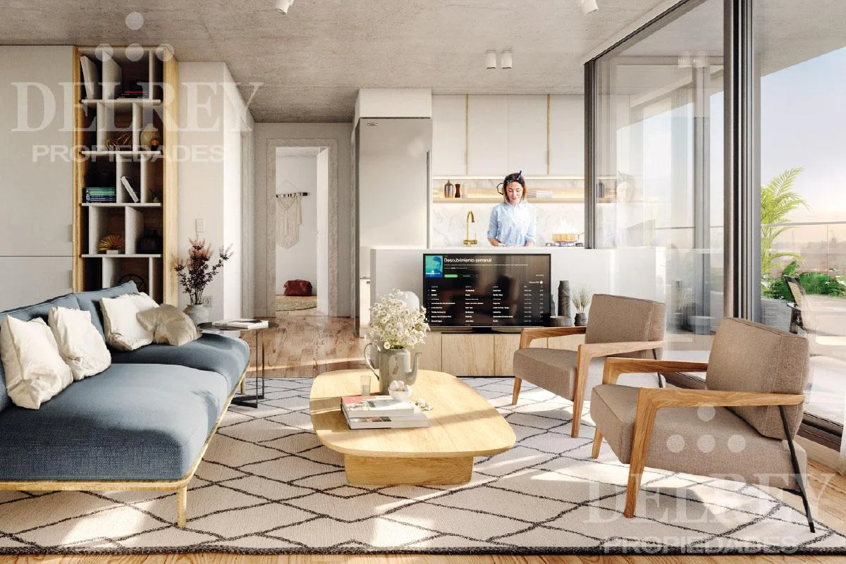 Amplio living comedor con ventanales hacia la estupenda terraza,