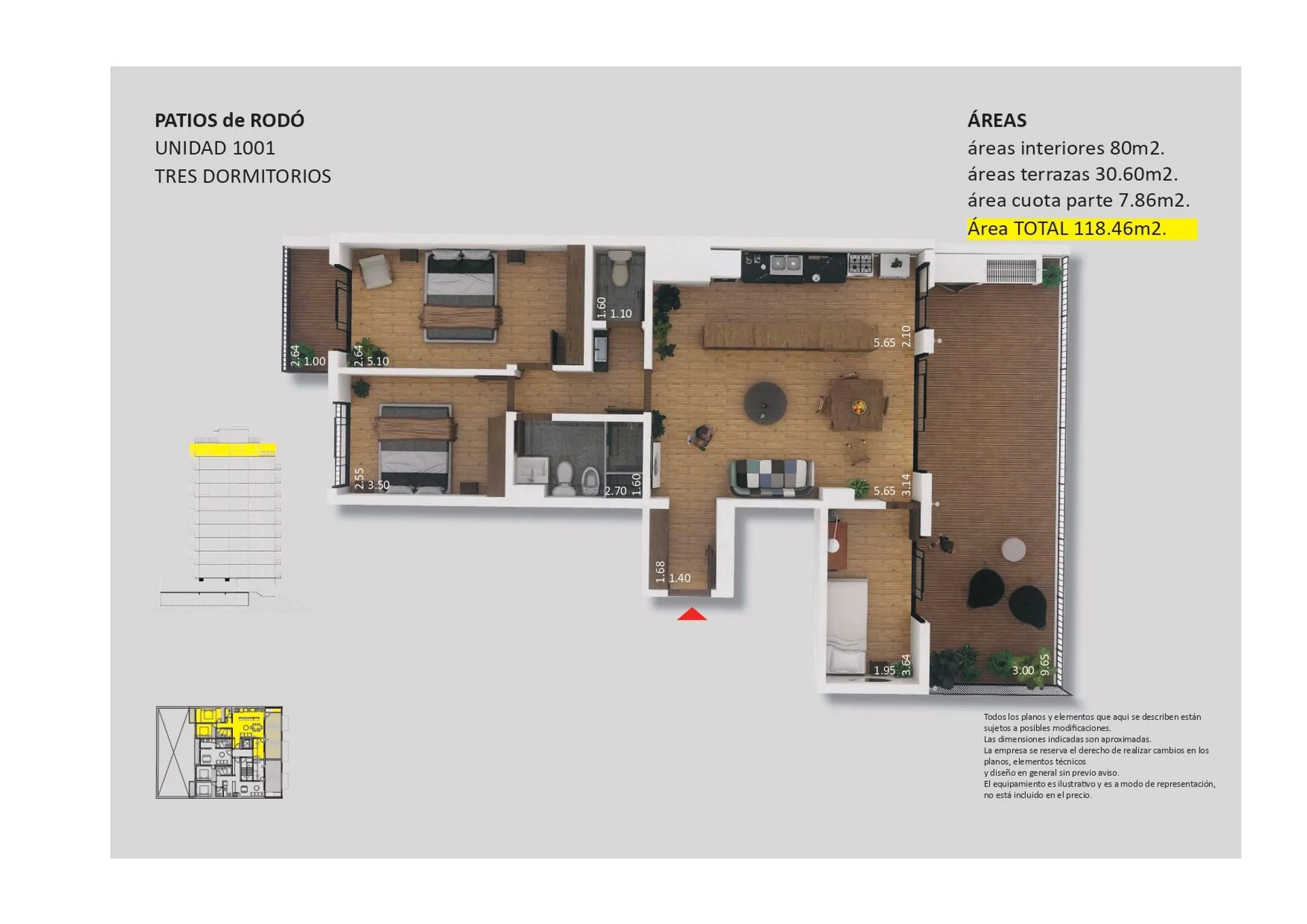 Corredor Responsable: - Contacto: Paula Vizcarra Gonzalez Patios de Rodó, ubicado en barrio Cordón, en un punto estratégico de la ciudad de Montevideo debido a su conectividad y cercanía a todos los servicios: universidades, pubs, centros de salud, cerca de avenidas principales La UNIDAD 1001, de 3 dormitorios, se desarrolla al frente y al contrafrente, con 80 m2 de área privada y 30,60 m2 de terraza, teniendo cómodas dimensiones para una excelente circulación en el área. El precio incluye la cochera doble! Todas las unidades poseen terrazas, previsión para la conexión de aires acondicionados, muebles aéreos y debajo mesada en cocinas, conexión para lavadora. En el último nivel el edificio posee un parrillero, gimnasio, playroom todos con salida al solárium y con terraza al frente y contrafrente del edificio. Además contará con Laundry. Proyecto avalado bajo la Ley No 18795 de Vivienda de Interés Social por la ANV, con importantes exoneraciones impositivas. ENTREGA FEBRERO 2027 Gastos de ocupación: 4% Cada Oficina es de propiedad, gestión y desarrollo independiente La presente publicación describe las características esenciales del inmueble, debiéndose consultar al responsable de la operación por la eventual actualización de las medidas, descripciones arquitectónicas y funcionales, servicios, impuestos, precios y demás información, cuyos valores son aproximados. Cada Oficina es de propiedad, gestión y desarrollo independiente La presente publicación describe las características esenciales del inmueble, debiéndose consultar al responsable de la operación por la eventual actualización de las medidas, descripciones arquitectónicas y funcionales, servicios, impuestos, precios y demás información, cuyos valores son aproximados.