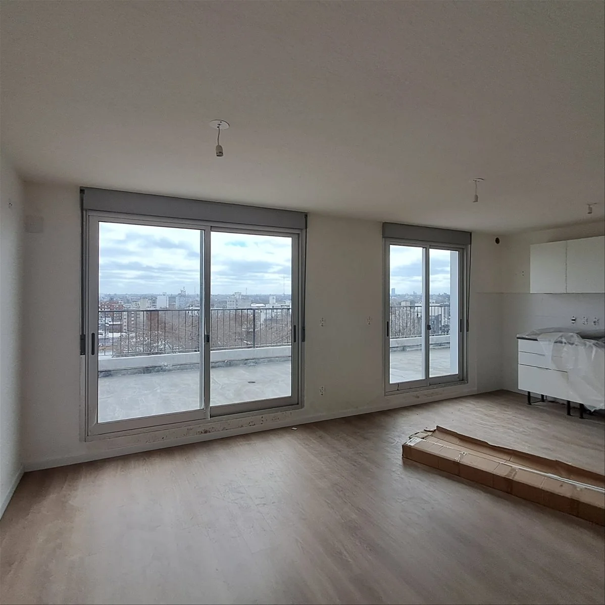 - Espacios de living y dormitorios con previsión eléctrica y sanitaria para equipos de aire acondicionado, pavimento vinílico y grandes aberturas de aluminio, protegidas con cortinas de enrollar en todos los ambientes. Los dormitorios cuentan con armarios completos y pavimento de tablas de vinílico.