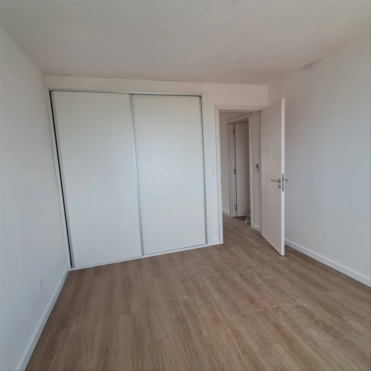 - Puertas de madera con terminación en lámina de PVC blanca.