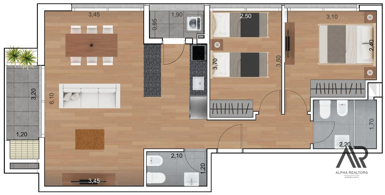 Además, el apartamento cuenta en su terraza con parrillero exclusivo.