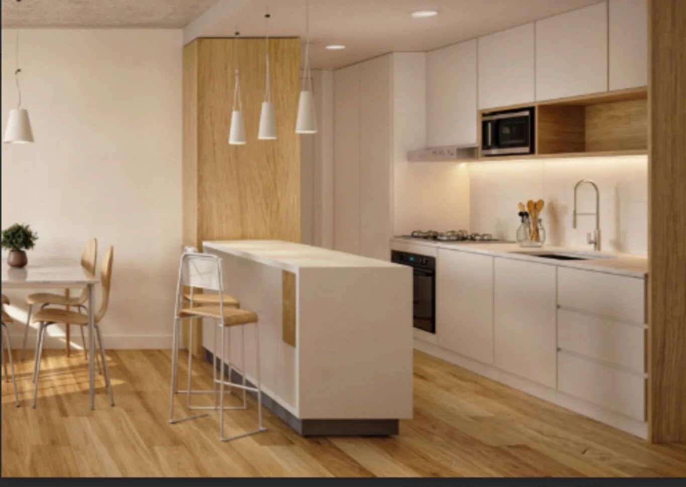 Cómodo living comedor con cocina integrada