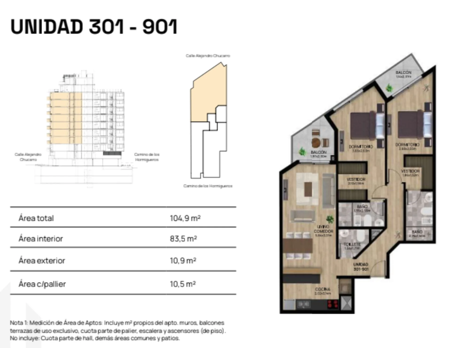 Corredor Responsable: - Contacto: Andrea Goldberg Lanzamiento del edificio \\\"DEL MAR\\\", a tan solo una cuadra de la Rambla, y playa de Pocitos. En uno de los lugares con mayor cantidad de servicios, desde supermercado, farmacia, panadería, y club deportivo. Va a ser un edificio, con características particulares, ya que tendrá ambas fachadas principales, una hacia la calle Alejandro Chucarro, y la otra hacia Camino de los Hormigueros. Sera un edificio de viviendas, en tipología de monoambiente, un dormitorio, y dos dormitorios. En el último piso tendrá barbacoa con parrillero sala de ejercicios y lavadero común. Esta unidad cuenta con dos dormitorios, uno de ellos en suite y el segundo con salida a un balcón. La cocina esta integrada al living comedor, el cual tiene acceso a un segundo balcón. Además, dispone de dos baños completos y un toilette. Compartimos con todos los colegas inmobiliarios Comisión inmobiliaria 3% + IVA Gastos conexión 4% Garajes disponibles por USD 27.000 Edificio construido por el arquitecto Lipatin. Cada Oficina es de propiedad, gestión y desarrollo independiente La presente publicación describe las características esenciales del inmueble, debiéndose consultar al responsable de la operación por la eventual actualización de las medidas, descripciones arquitectónicas y funcionales, servicios, impuestos, precios y demás información, cuyos valores son aproximados.