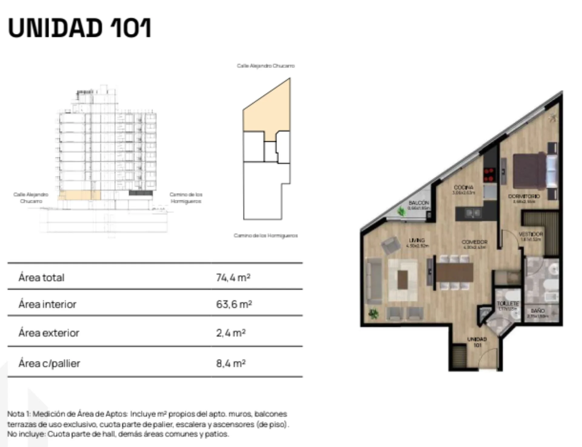 Corredor Responsable: - Contacto: Andrea Goldberg Lanzamiento del edificio \\\"DEL MAR\\\", a tan solo una cuadra de la Rambla, y playa de Pocitos. En uno de los lugares con mayor cantidad de servicios, desde supermercado, farmacia, panadería, y club deportivo. Va a ser un edificio, con características particulares, ya que tendrá ambas fachadas principales, una hacia la calle Alejandro Chucarro, y la otra hacia Camino de los Hormigueros. Sera un edificio de viviendas, en tipología de monoambiente, un dormitorio, y dos dormitorios. En el último piso tendrá barbacoa con parrillero sala de ejercicios y lavadero común. Esta unidad cuenta con un dormitorio en suite, mas un toilette. La cocina esta integrada al amplio living comedor, el cual tiene acceso al balcón. Compartimos con todos los colegas inmobiliarios Comisión inmobiliaria 3% + IVA Gastos conexión 4% Garajes disponibles por USD 27.000 Edificio construido por el arquitecto Lipatin. Cada Oficina es de propiedad, gestión y desarrollo independiente La presente publicación describe las características esenciales del inmueble, debiéndose consultar al responsable de la operación por la eventual actualización de las medidas, descripciones arquitectónicas y funcionales, servicios, impuestos, precios y demás información, cuyos valores son aproximados.