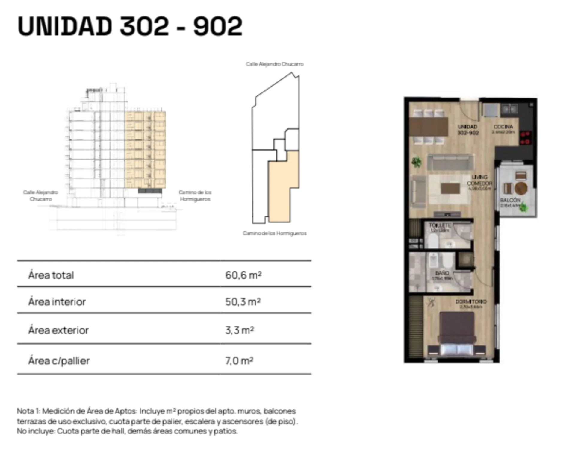 Corredor Responsable: - Contacto: Andrea Goldberg Lanzamiento del edificio \\\"DEL MAR\\\", a tan solo una cuadra de la Rambla, y playa de Pocitos. En uno de los lugares con mayor cantidad de servicios, desde supermercado, farmacia, panadería, y club deportivo. Va a ser un edificio, con características particulares, ya que tendrá ambas fachadas principales, una hacia la calle Alejandro Chucarro, y la otra hacia Camino de los Hormigueros. Sera un edificio de viviendas, en tipología de monoambiente, un dormitorio, y dos dormitorios. En el último piso tendrá barbacoa con parrillero sala de ejercicios y lavadero común. Esta unidad cuenta con un dormitorio en suite, mas un toilette. La cocina esta integrada al living comedor, el cual tiene acceso al balcón. Compartimos con todos los colegas inmobiliarios Comisión inmobiliaria 3% + IVA Gastos conexión 4% Garajes disponibles por USD 27.000 Edificio construido por el arquitecto Lipatin. Cada Oficina es de propiedad, gestión y desarrollo independiente La presente publicación describe las características esenciales del inmueble, debiéndose consultar al responsable de la operación por la eventual actualización de las medidas, descripciones arquitectónicas y funcionales, servicios, impuestos, precios y demás información, cuyos valores son aproximados.