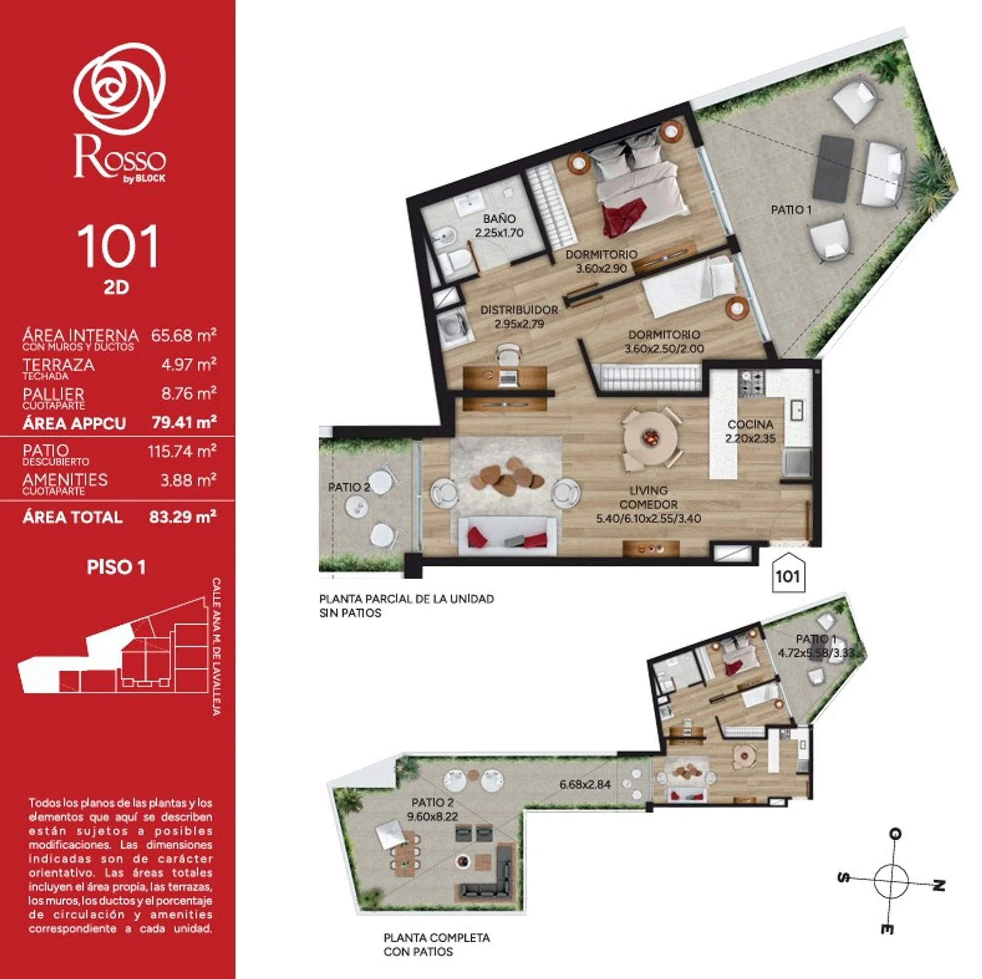 Corredor Responsable: - Contacto: Valeria Cruz Venta Apartamento 2 dormitorios con Patio Rosso Cordón Entrega Marzo 2028 ROSSO by Block es un lanzamiento único en Cordón Sur, ubicado estratégicamente en Ana M. de Lavalleja y Juan Paullier, se encuentra a pocos metros de la Avenida 18 de Julio y el Bulevar Artigas. Un proyecto de 10 pisos y 78 apartamentos. - Unidad de 2 dormitorios con amplias terrazas - Precios especiales - 10% de descuento en las primeras unidades - Entrega marzo 2028 Podemos visitar showroom con mismas terminaciones en otro edificio avanzado. Amenidades de primer nivel: Terraza panorámica con vistas al skyline Gimnasio equipado Salón polivalente con parrillero interior Espacio exterior pergolado con parrillero Soporte para bicicletas y laundry con app Wi-Fi en áreas comunes Previsión para vehículos eléctricos Seguridad con cámaras CCTV y cerradura electrónica Beneficios fiscales – Ley de Vivienda Promovida Exoneración de ITP Exoneración de IRPF/IRAE en rentas por 10 años Exoneración de Impuesto al Patrimonio por 10 años Respaldado por BLOCK Más de diez proyectos construidos y exitosos garantizan trayectoria, confianza y solidez. Invertir en lanzamiento significa anticiparse y acceder a condiciones exclusivas que no vuelven a repetirse. ROSSO reúne todas las condiciones que un inversor busca con gran potencial de renta. Cada Oficina es de propiedad, gestión y desarrollo independiente La presente publicación describe las características esenciales del inmueble, debiéndose consultar al responsable de la operación por la eventual actualización de las medidas, descripciones arquitectónicas y funcionales, servicios, impuestos, precios y demás información, cuyos valores son aproximados.