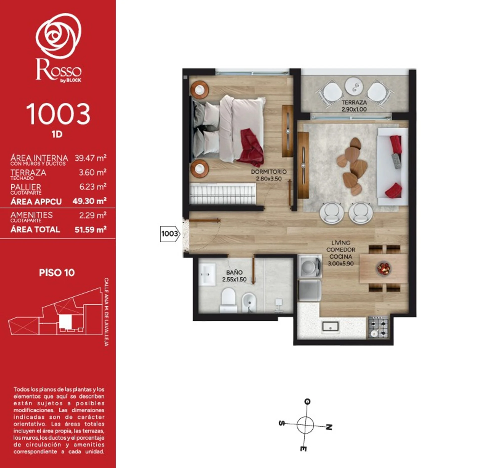 Corredor Responsable: - Contacto: Valeria Cruz Venta Apartamento 1 dormitorio Rosso Cordón Entrega Marzo 2028 ROSSO by Block es un lanzamiento único en Cordón Sur, ubicado estratégicamente en Ana M. de Lavalleja y Juan Paullier, se encuentra a pocos metros de la Avenida 18 de Julio y el Bulevar Artigas. Un proyecto de 10 pisos y 78 apartamentos. - Unidad de 1 dormitorio con terraza - Precios especiales - 10% de descuento en las primeras unidades - Entrega marzo 2028 Podemos visitar showroom con mismas terminaciones en otro edificio avanzado. Amenidades de primer nivel: Terraza panorámica con vistas al skyline Gimnasio equipado Salón polivalente con parrillero interior Espacio exterior pergolado con parrillero Soporte para bicicletas y laundry con app Wi-Fi en áreas comunes Previsión para vehículos eléctricos Seguridad con cámaras CCTV y cerradura electrónica Beneficios fiscales – Ley de Vivienda Promovida Exoneración de ITP Exoneración de IRPF/IRAE en rentas por 10 años Exoneración de Impuesto al Patrimonio por 10 años Respaldado por BLOCK Más de diez proyectos construidos y exitosos garantizan trayectoria, confianza y solidez. Invertir en lanzamiento significa anticiparse y acceder a condiciones exclusivas que no vuelven a repetirse. ROSSO reúne todas las condiciones que un inversor busca con gran potencial de renta. Cada Oficina es de propiedad, gestión y desarrollo independiente La presente publicación describe las características esenciales del inmueble, debiéndose consultar al responsable de la operación por la eventual actualización de las medidas, descripciones arquitectónicas y funcionales, servicios, impuestos, precios y demás información, cuyos valores son aproximados.
