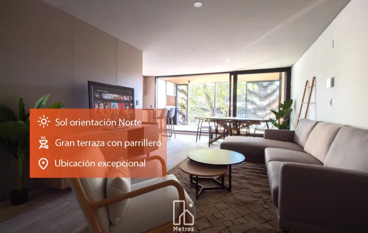 Gran Terraza Parrillero al Norte • Amplio Living comedor • Muy luminoso • Cocina integrada • 3 Dormitorios • 3 baños (uno en suite) • Vestidor