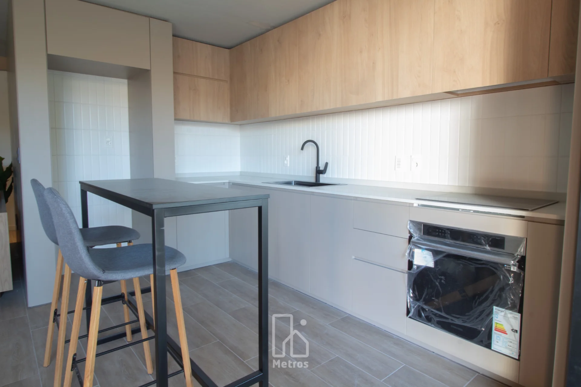 En la cocina esta unidad cuenta con mobiliario de cocina, muebles bajo mesada, alacena, anafe y espacio para colocación de horno empotrado. Además con lindo diseño contemporáneo y buenas terminaciones. La cocina está integrada al living comedor mediante una isla.