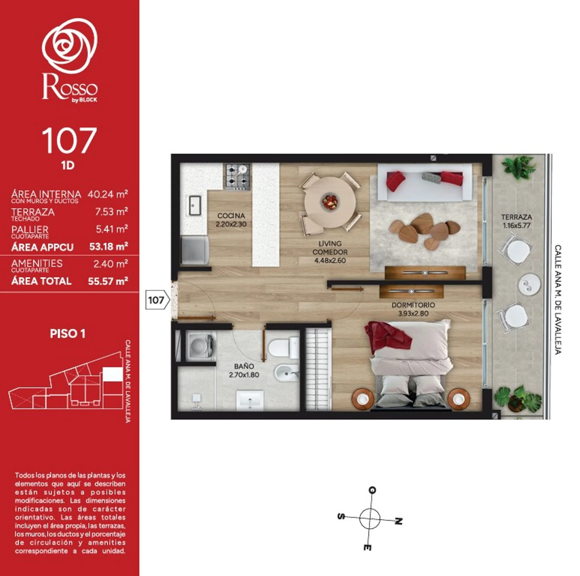 Corredor Responsable: - Contacto: Valeria Cruz Venta Apartamento 1 dormitorios Rosso Cordón Entrega Marzo 2028 ROSSO by Block es un lanzamiento único en Cordón Sur, ubicado estratégicamente en Ana M. de Lavalleja y Juan Paullier, se encuentra a pocos metros de la Avenida 18 de Julio y el Bulevar Artigas. Un proyecto de 10 pisos y 78 apartamentos. - Unidad de 1 dormitorios con terraza - Precios especiales - 10% de descuento en las primeras unidades - Entrega marzo 2028 Podemos visitar showroom con mismas terminaciones en otro edificio avanzado. Amenidades de primer nivel: Terraza panorámica con vistas al skyline Gimnasio equipado Salón polivalente con parrillero interior Espacio exterior pergolado con parrillero Soporte para bicicletas y laundry con app Wi-Fi en áreas comunes Previsión para vehículos eléctricos Seguridad con cámaras CCTV y cerradura electrónica Beneficios fiscales – Ley de Vivienda Promovida Exoneración de ITP Exoneración de IRPF/IRAE en rentas por 10 años Exoneración de Impuesto al Patrimonio por 10 años Respaldado por BLOCK Más de diez proyectos construidos y exitosos garantizan trayectoria, confianza y solidez. Invertir en lanzamiento significa anticiparse y acceder a condiciones exclusivas que no vuelven a repetirse. ROSSO reúne todas las condiciones que un inversor busca con gran potencial de renta. Cada Oficina es de propiedad, gestión y desarrollo independiente La presente publicación describe las características esenciales del inmueble, debiéndose consultar al responsable de la operación por la eventual actualización de las medidas, descripciones arquitectónicas y funcionales, servicios, impuestos, precios y demás información, cuyos valores son aproximados.