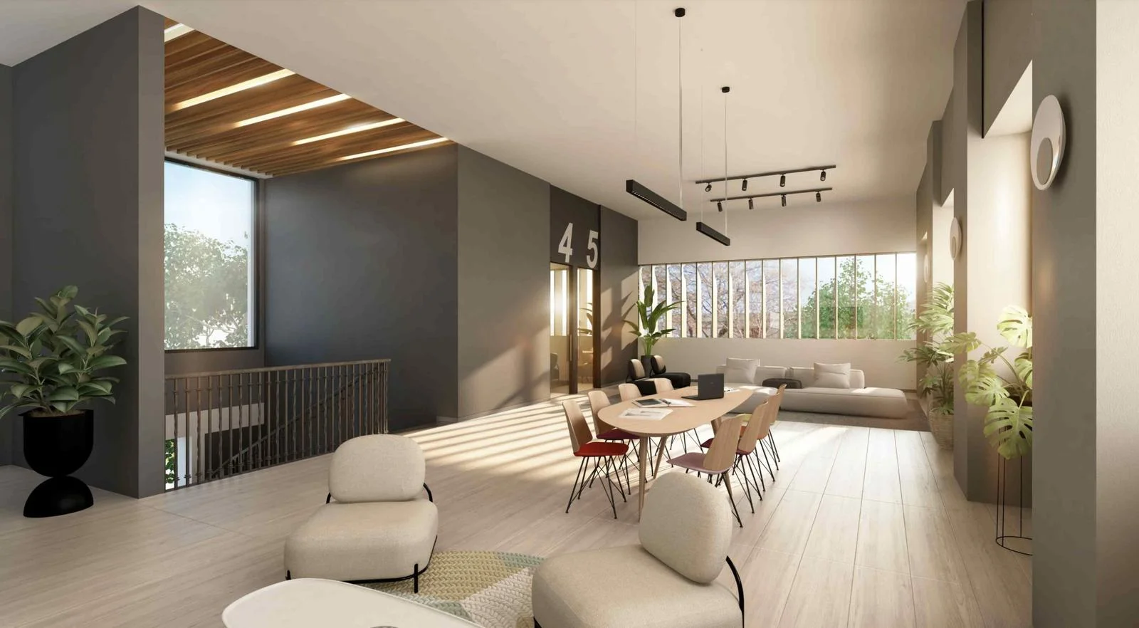 • Recorrido peatonal exterior con diseño de paisaje e iluminación decorativa.