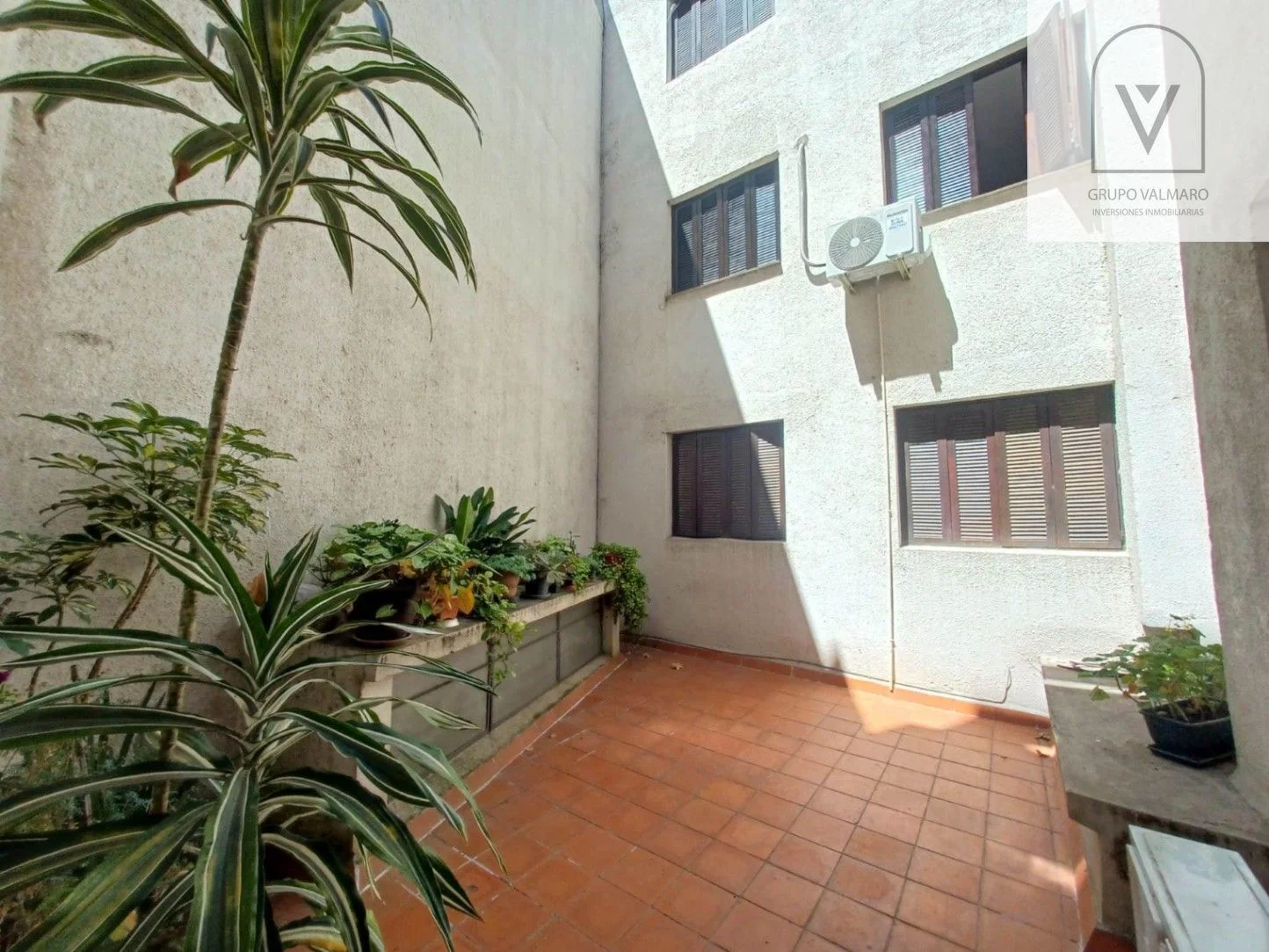 Primer piso por escalera, El edificio tiene un pequeño patio interior que añade un toque verde al ambiente.