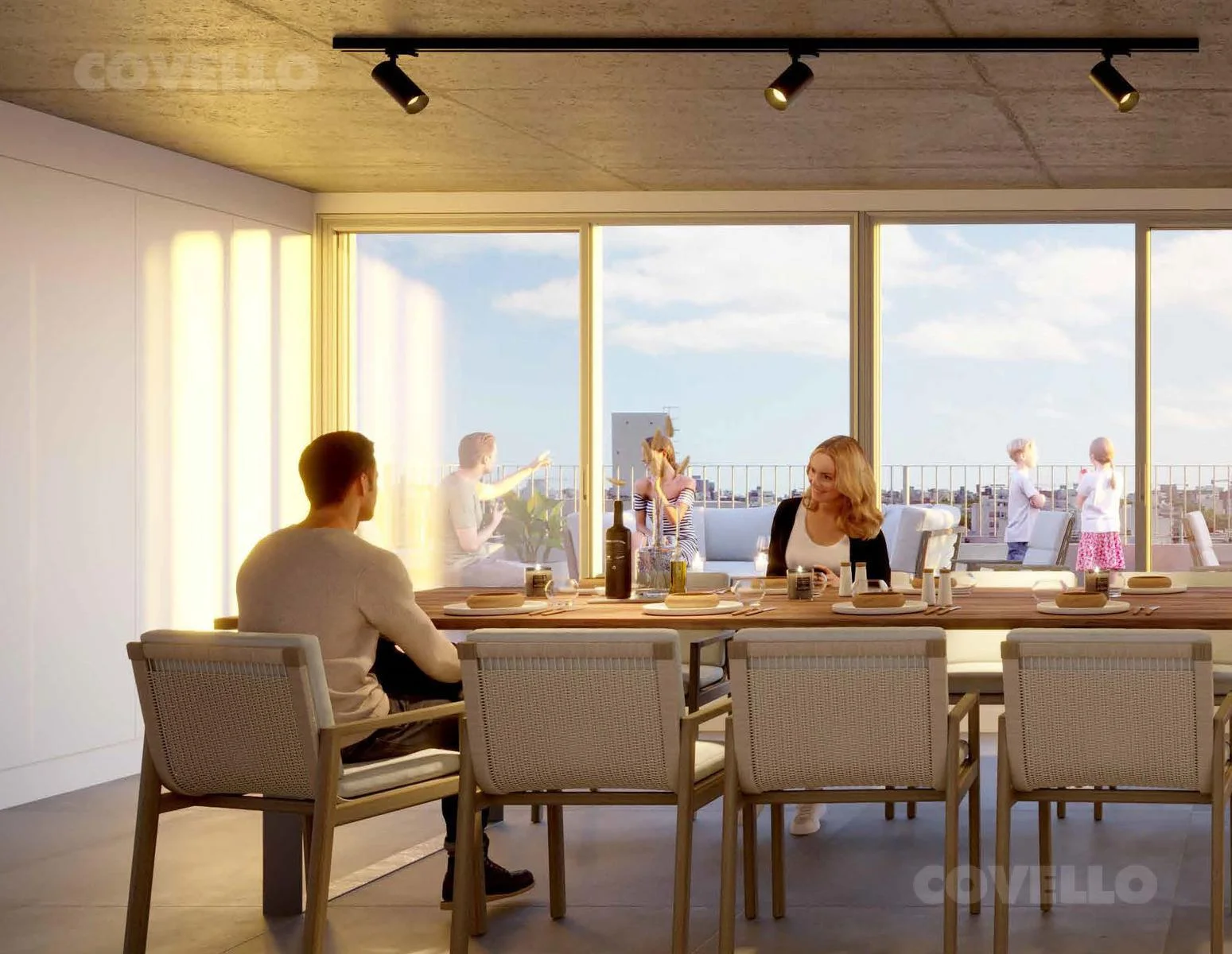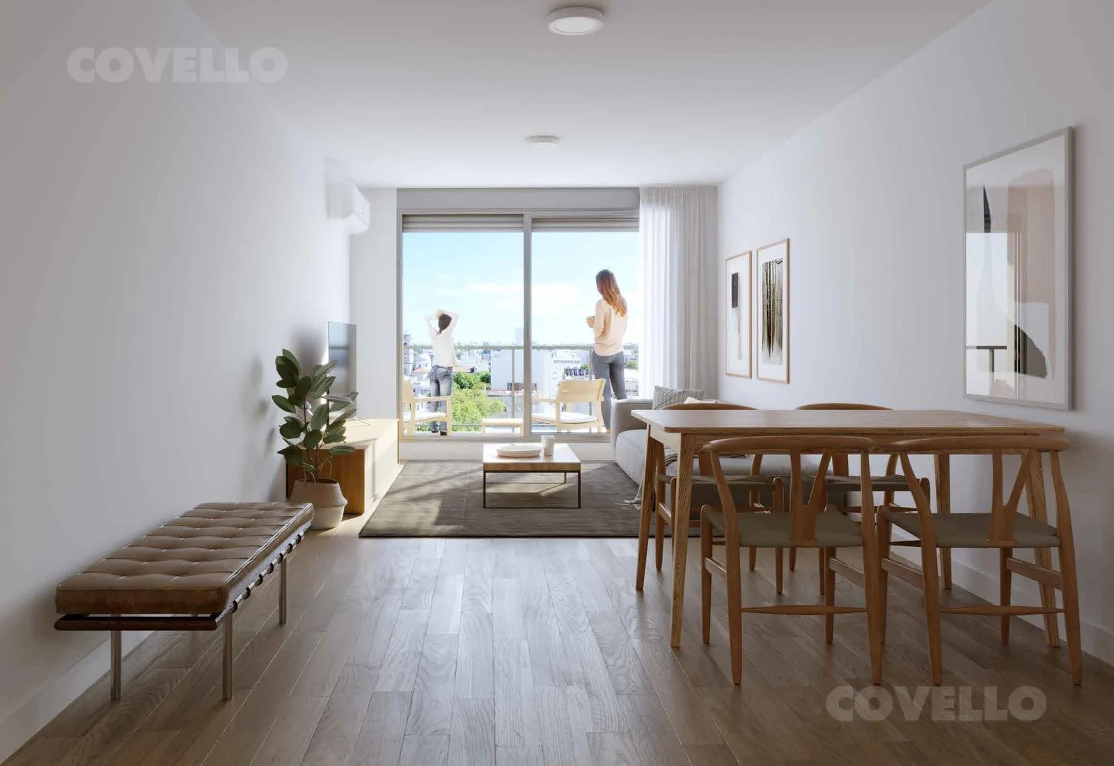 El área de estar y comedor se fusiona perfectamente, creando un espacio versátil para el entretenimiento y el descanso. Las amplias ventanas permiten la entrada de luz natural, iluminando cada rincón de la habitación y ofreciendo vistas impresionantes de la ciudad.