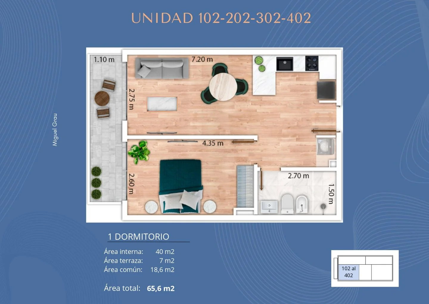 ¡TreeHouse Bienes Raíces Vende! Apartamento 1 DORMITORIO con terraza en Puerto del Buceo. Ubicado sobre la calle Miguel Grau, en el barrio Puerto del Buceo. A tan solo 100 metros de la Rambla de Montevideo y 300 metros de Montevideo Shopping, en cercanía a todos los servicios y excelentes propuestas gastronómicas. Edificio Terrazas de Buceo: se distribuye en 5 plantas, compuesto por 17 unidades de apartamentos. Cuenta con 9 unidades monoambiente, 8 de 1 Dormitorio y 6 unidades de cocheras. En el piso 5 se están ubicados los amenities. La unidad 302: ubicada al frente con 47m2 totales, distribuido en cocina de concepto abierto integrado al living comedor con salida a la terraza, 1 dormitorios también con salida a la terraza y baño completo. En cuanto a las terminaciones, las unidades se entregan con ventas doble vidrio, mesada de granito, anafe, campana, grifería y muebles de cocina. También contara con pre instalación de aire acondicionado y lavarropas. Reja perimetral para brindar mayor seguridad, circulito de cámaras con monitoreo a distancia y portero eléctrico. Agente: Verónica Bassetti. . Caracteristicas: BALCON, LIVING COMEDOR, CERRAMIENTO PTRAL, PLACARD EN COCINA XINTEL (TBR-TBR-4098)