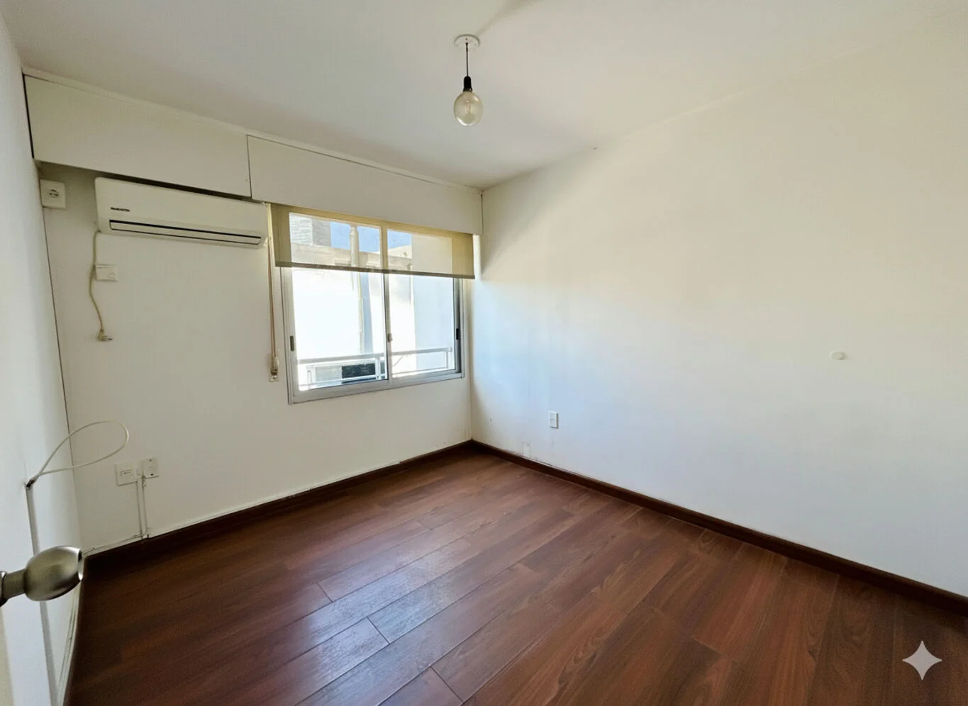 Dormitorio con placard y aire acondicionado.