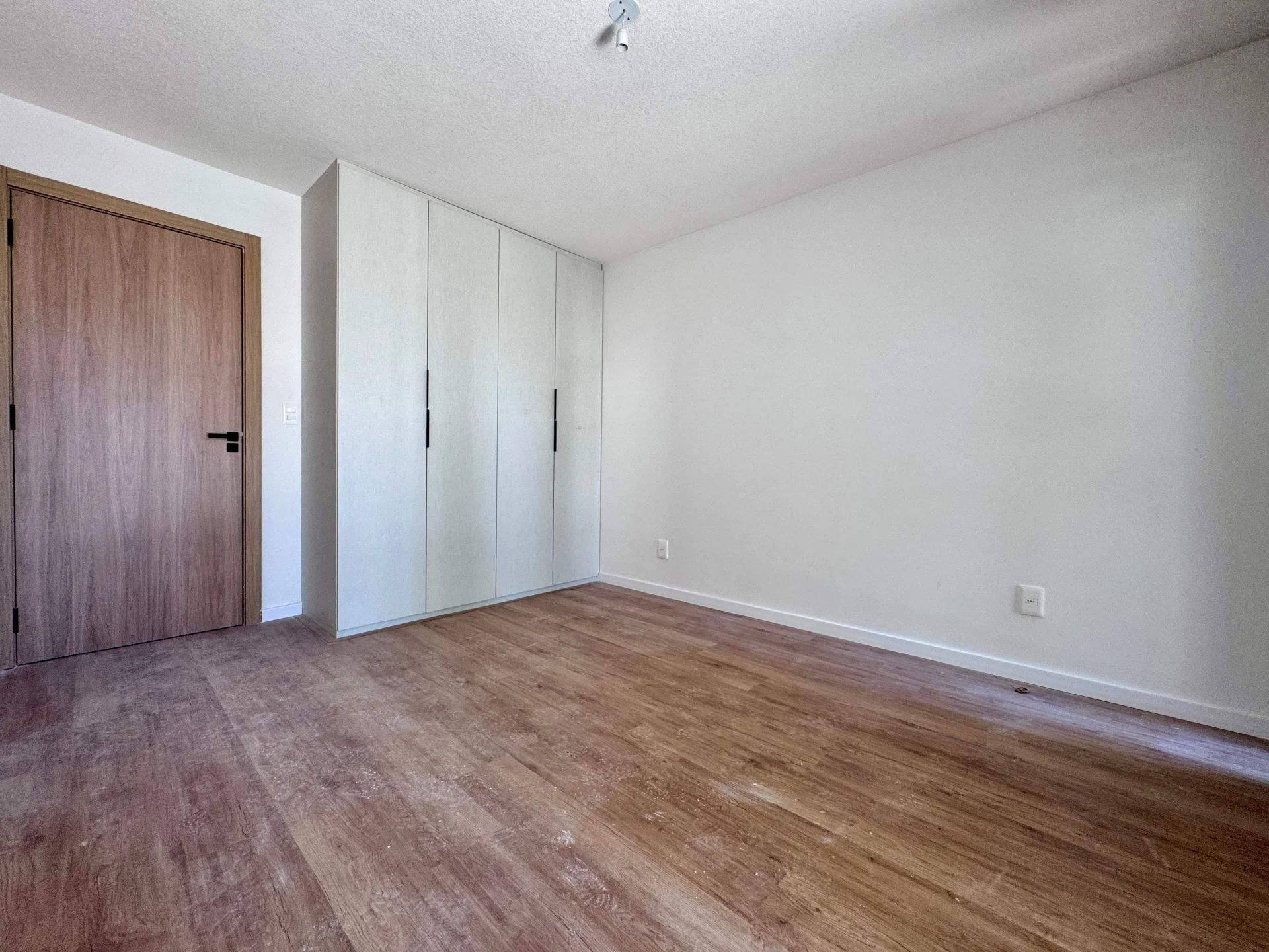 Dormitorio con placard y acceso a terraza, donde se encuentra la conexión para lavarropas.