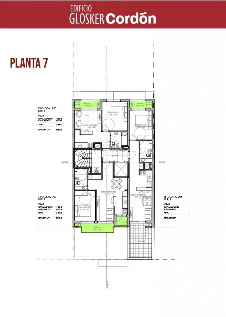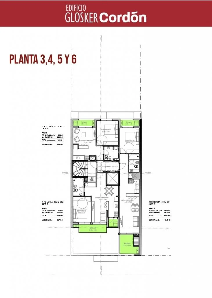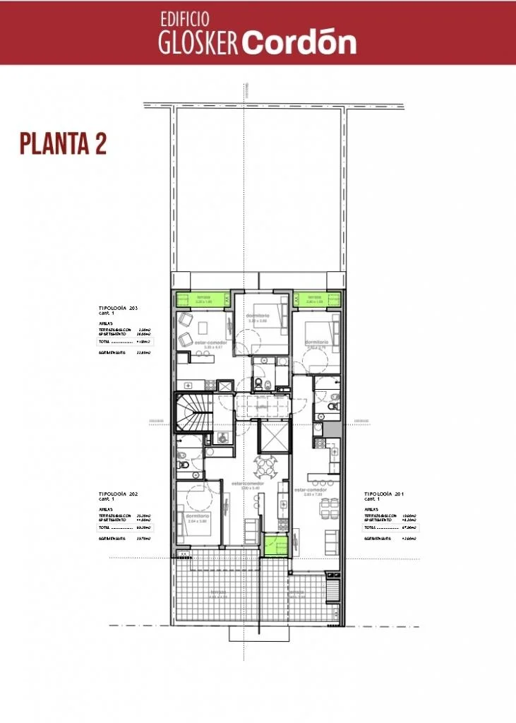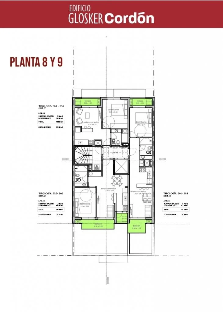 203 a 903) 38m área propia + 3,50m terrazas = Total 41,50m.
