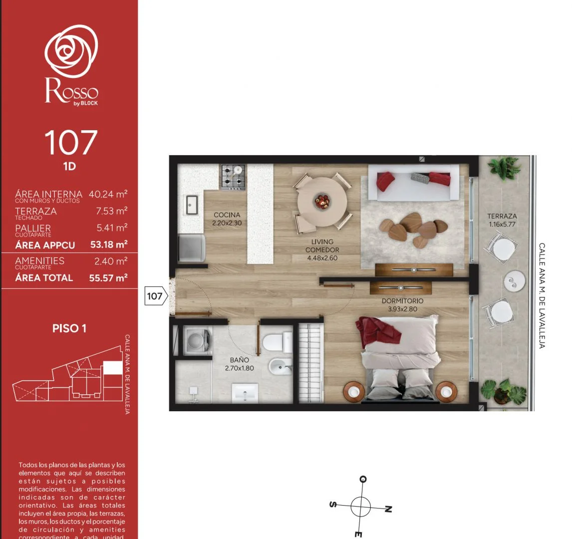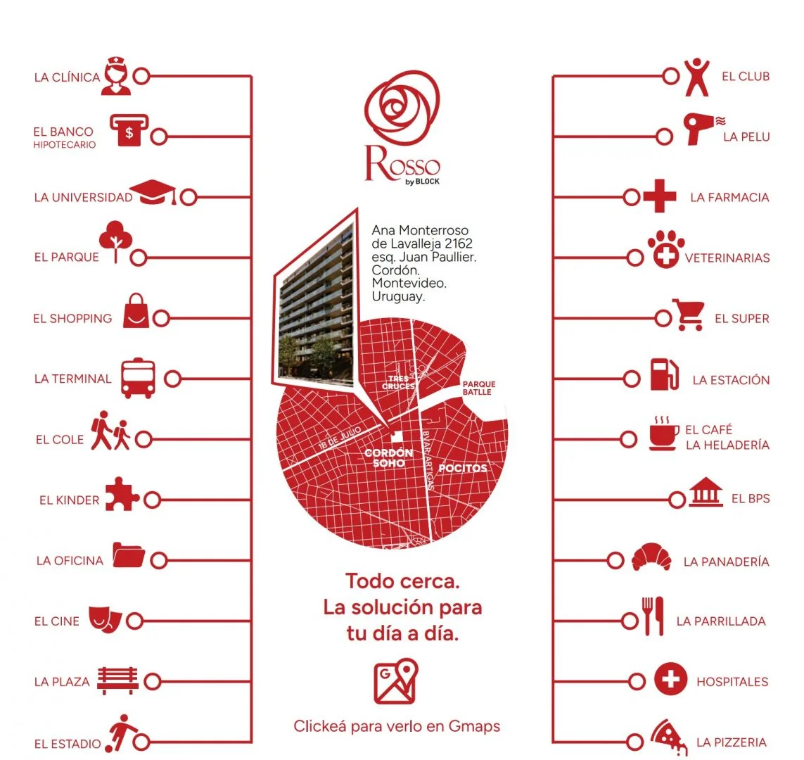 TreeHouse Bienes Raíces presenta este espectacular apartamento de 1 dormitorio con terraza en Cordón Sur. Estrena 2028. Edificio Rosso By Block, ubicado en Ana Monterroso Lavalleja esquina Juan Paullier. A metros de Av. 18 de Julio y Br. Artigas y muy cerca de Pocitos. Preferido por inversores y quienes buscan un nuevo hogar, por su movilidad, su proximidad a la terminal de Tres Cruces, además de su amplia infraestructura comercial y de servicios y su cercanía a uno de los pulmones verdes más grande de la ciudad, Parque Batlle. La unidad se encuentra en primer piso piso (U107) con orientación Norte, y cuenta con 40,8 m² interiores + 7,53m² de terraza. Características del apartamento: - Living comedor con salida a la terraza - Cocina integrada con barra desayunadora y espacio de guardado - Dormitorio con espacio para placard y salida a la terraza - Baño completo Amenities del edificio: SUM con parrillero, Barbacoa Abierta, Gym con espacio para yoga, Racks de soporte para bicicletas, Laundry con app, Wifi libre en áreas comunes, Previsión para vehículos eléctricos, cámaras CCTV de seguridad, cerradura electrónica. -Gastos de ocupación: 4% Beneficios que otorga la Ley de Vivienda Promovida (Ley 18.795): - Exoneración de ITP (2%). - Exoneración de IVA. - Exoneración del Impuesto al Patrimonio por 10 años. - Exoneración de IRPF/IRAE sobre rentas de alquiler por 10 años. Agendá tu visita para conocer el showroom! XINTEL (TBR-TBR-4456)