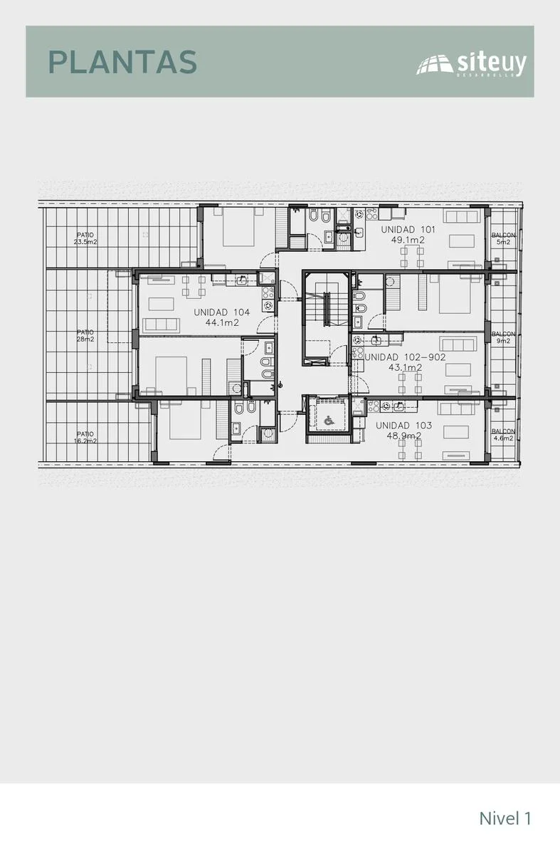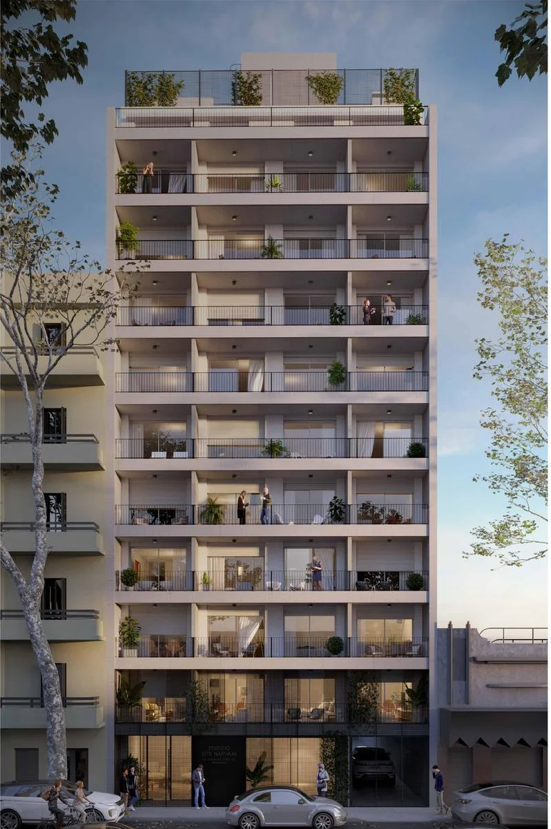 -Las unidades cuentan con terrazas o patios exclusivos, barandas metálicas verticales en balcones y divisorios entre balcones.