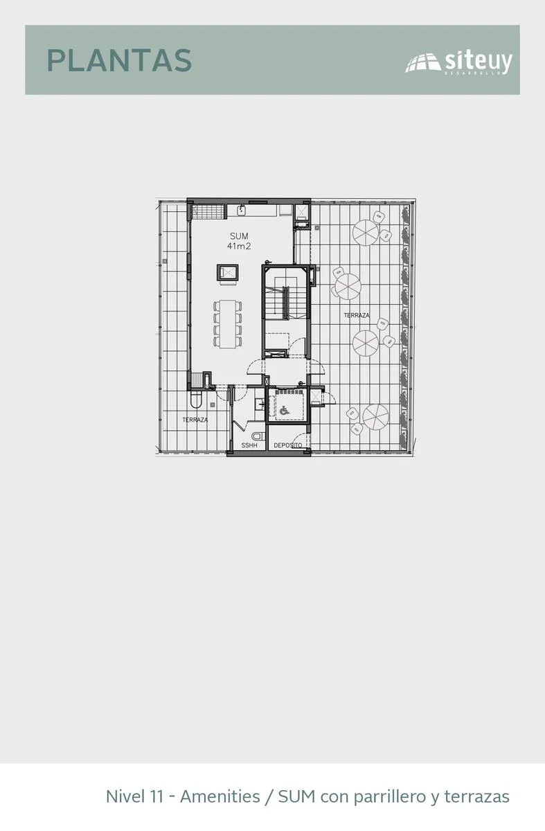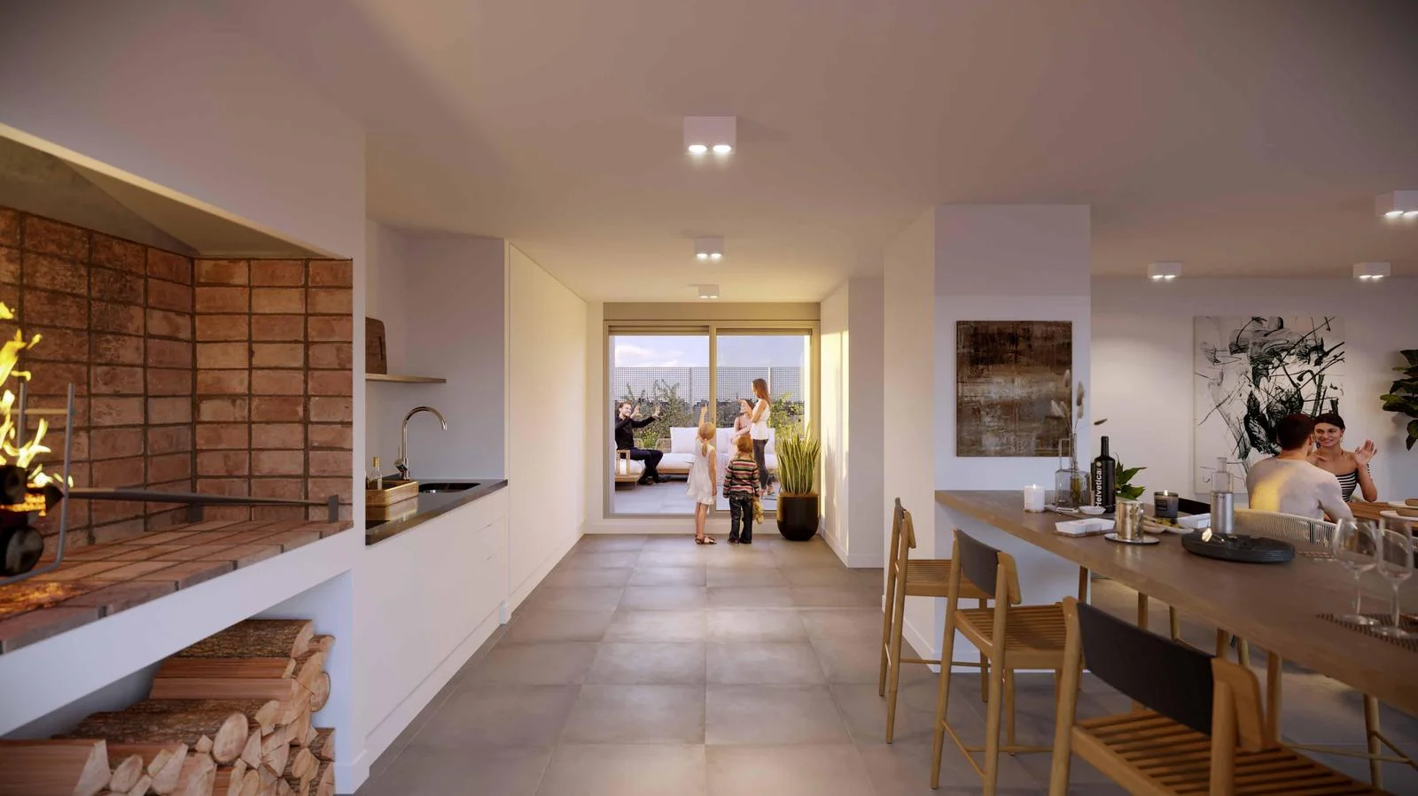 Los amenities en el nivel de azotea están conformados por un parrillero cerrado común equipado con mobiliario y dos terrazas con diferentes orientaciones y amplias vistas despejadas del entorno.