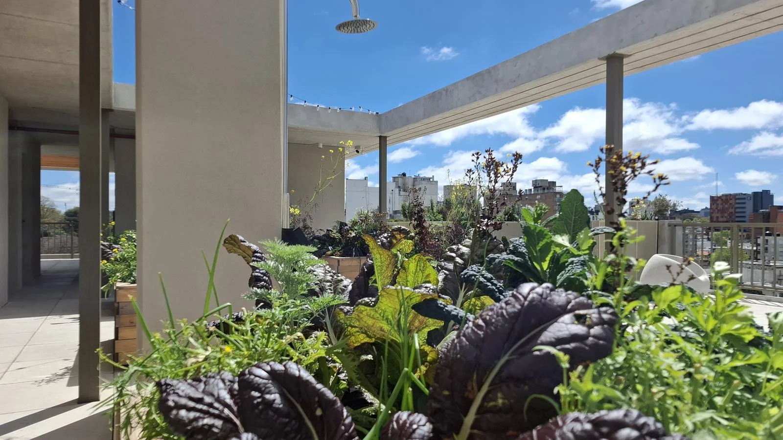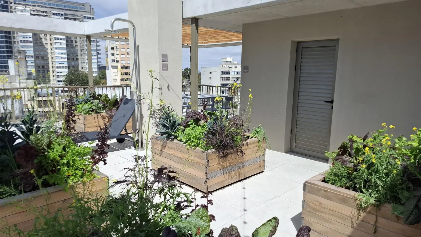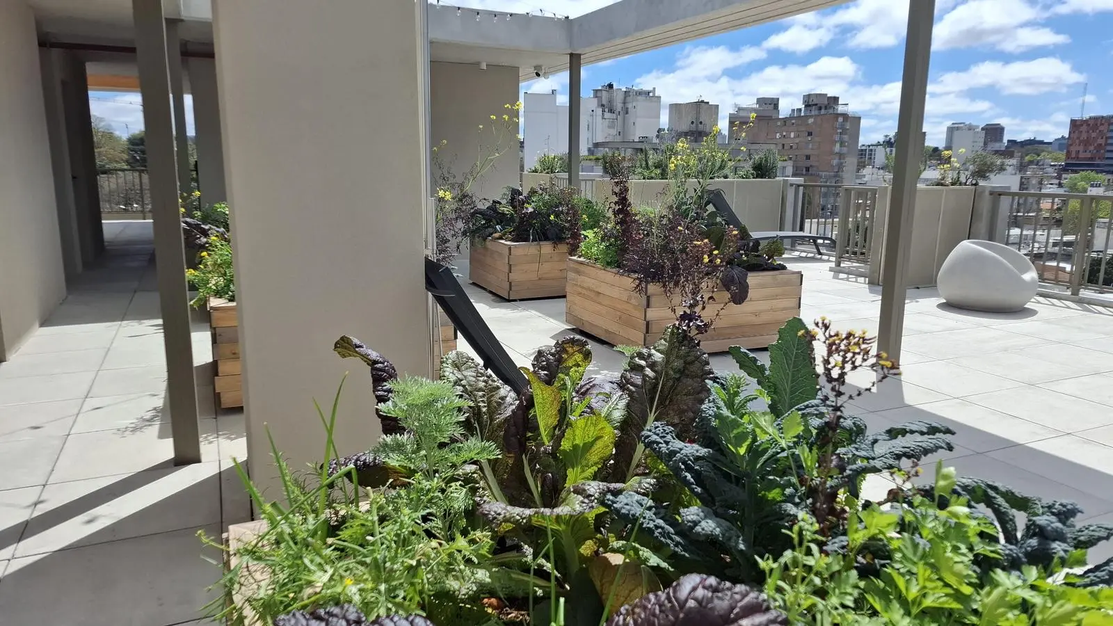 Huerta orgánica en la terraza para uso comunitari