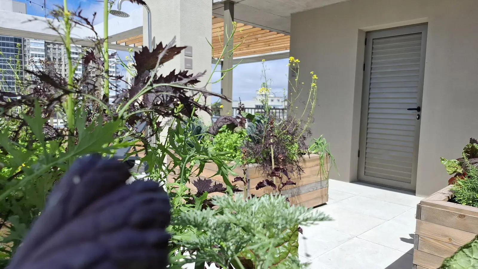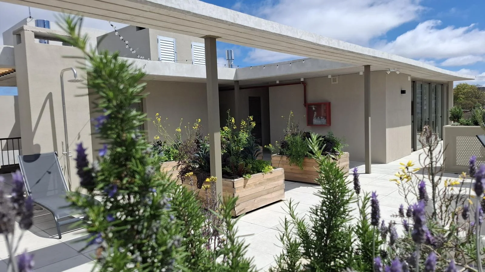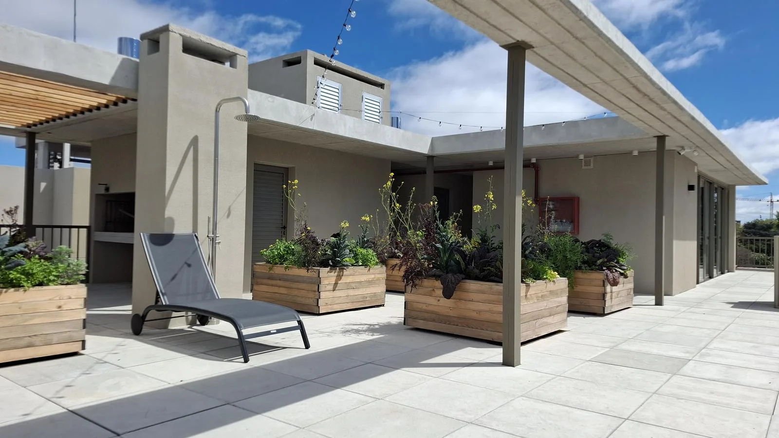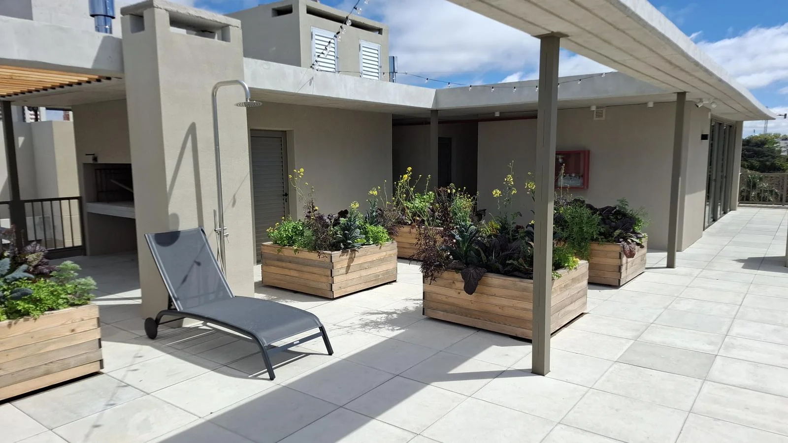 Huerta orgánica en la terraza para uso comunitari