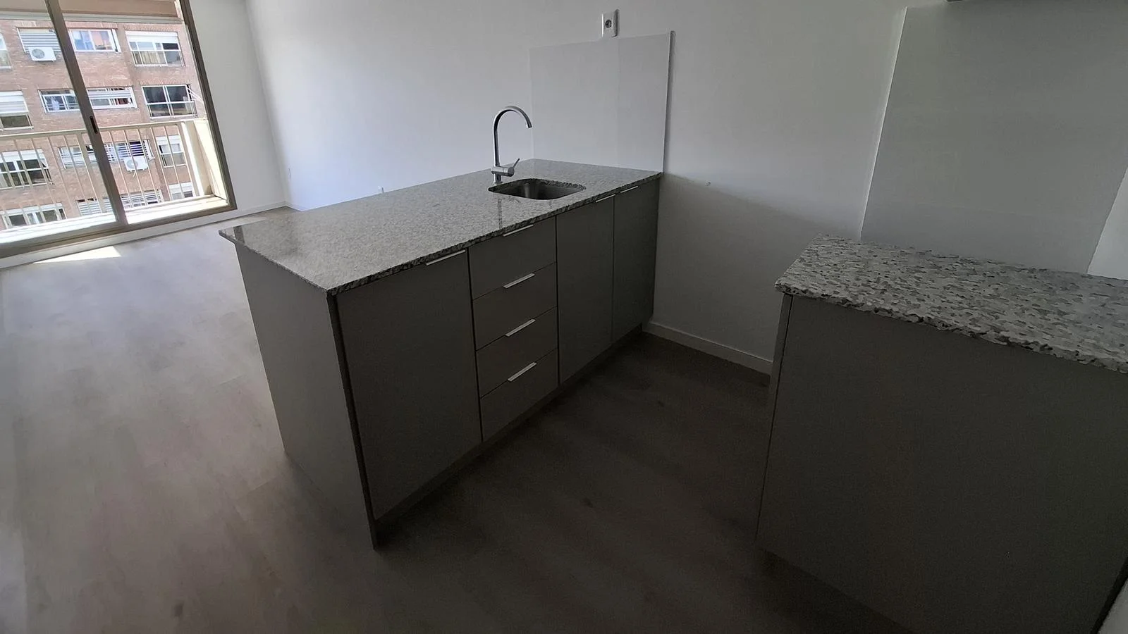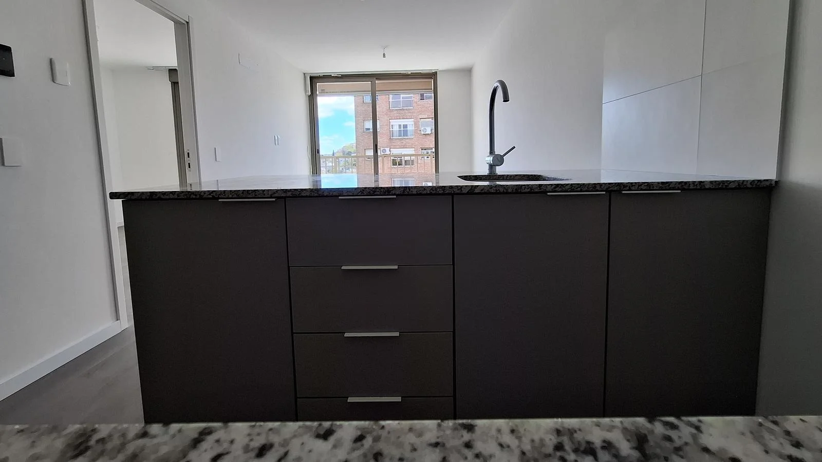 Cocinas con vinílicos premium, mesadas de granito y muebles bajo mesada.