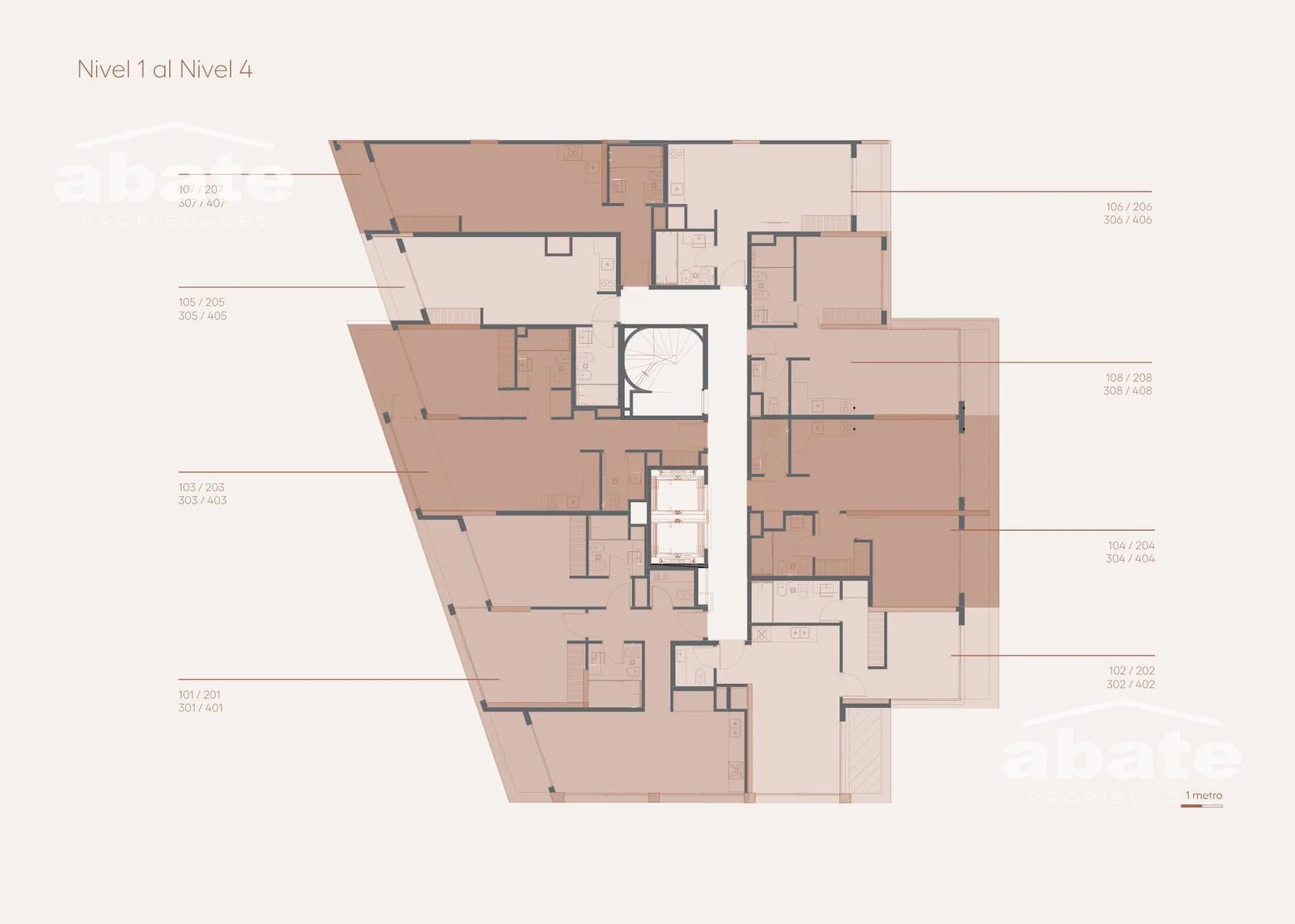 El edificio se desarrolla en 12 niveles, con 2 subsuelos de estacionamiento, locales comerciales en planta baja y espacios pensados para la vida moderna.