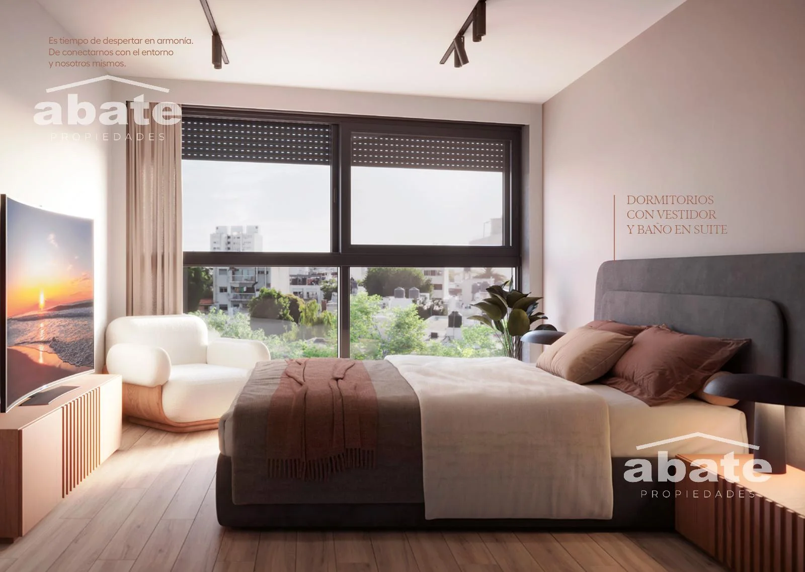 Dormitorio principal en Suite, con acceso a una segunda terraza al frente.