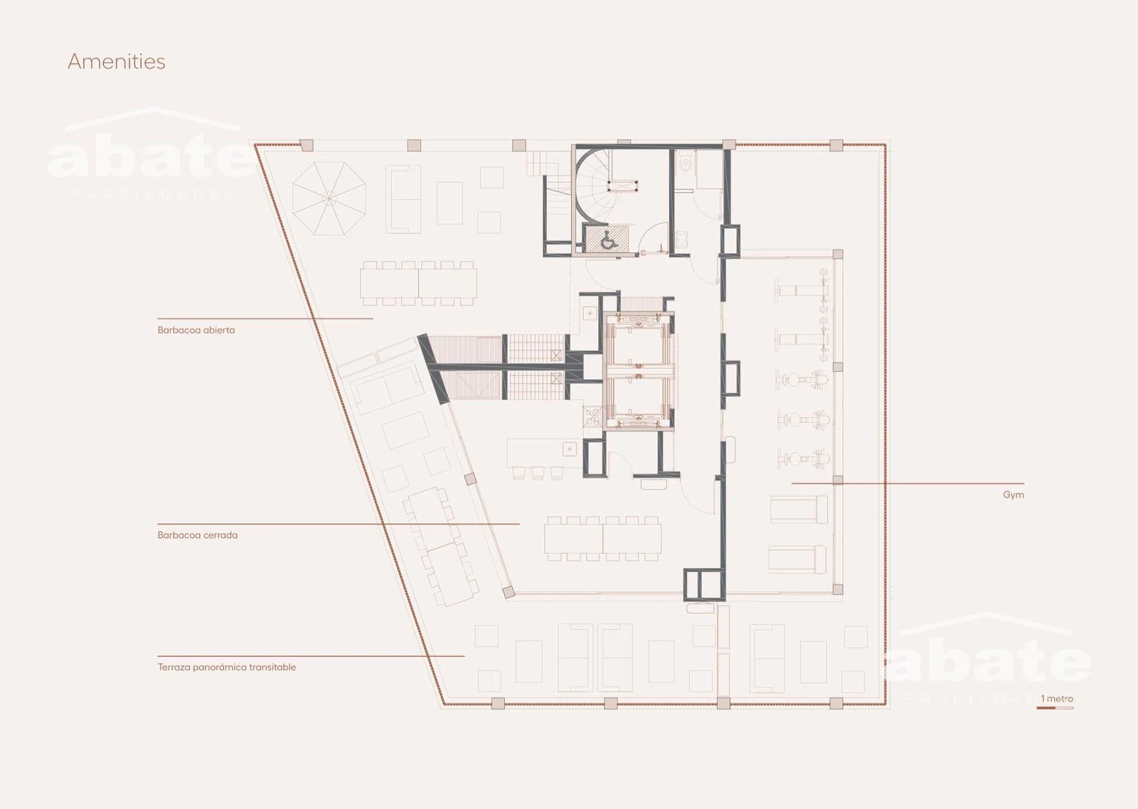En el piso 10: dos barbacoas con vistas 360° a la ciudad y la Rambla, gimnasio equipado, grandes terrazas y solárium.