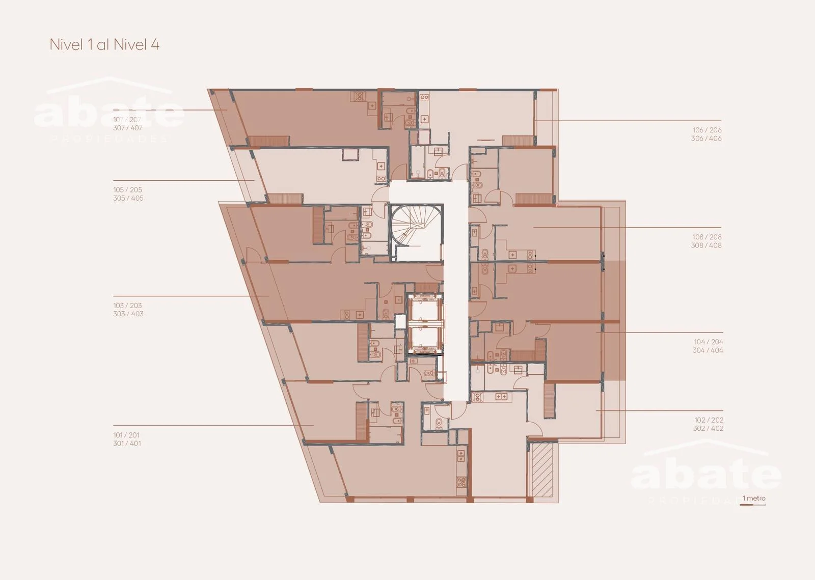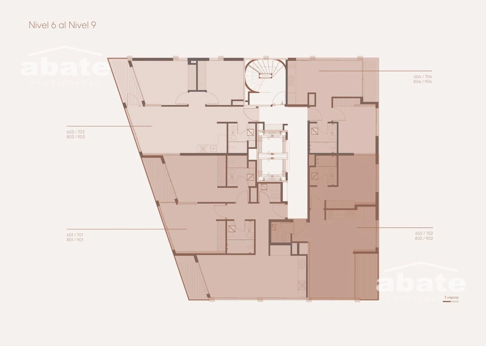 El edificio se desarrolla en 12 niveles, con 2 subsuelos de estacionamiento, locales comerciales en planta baja y espacios pensados para la vida moderna.